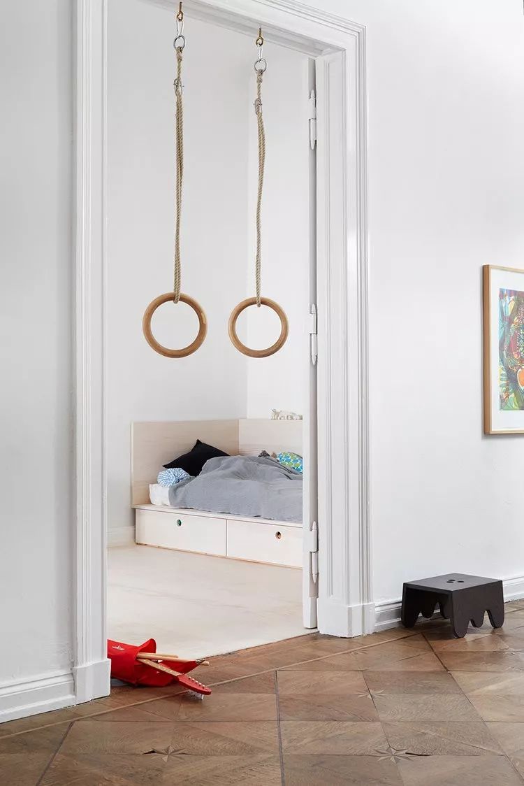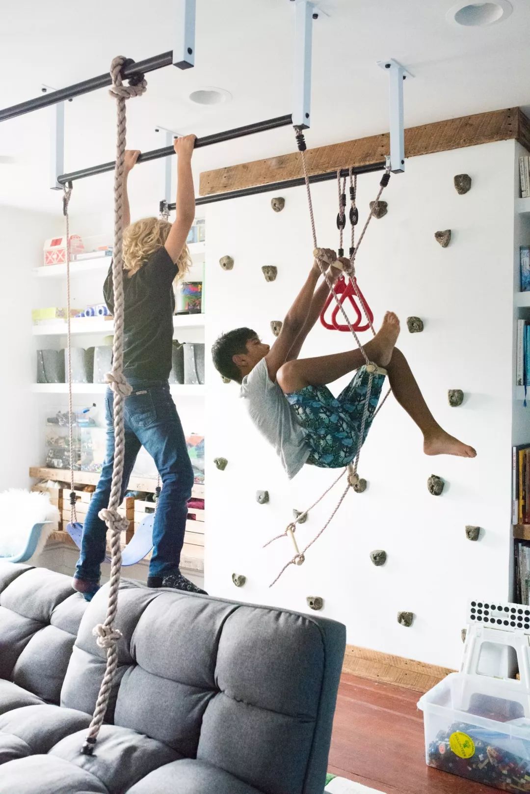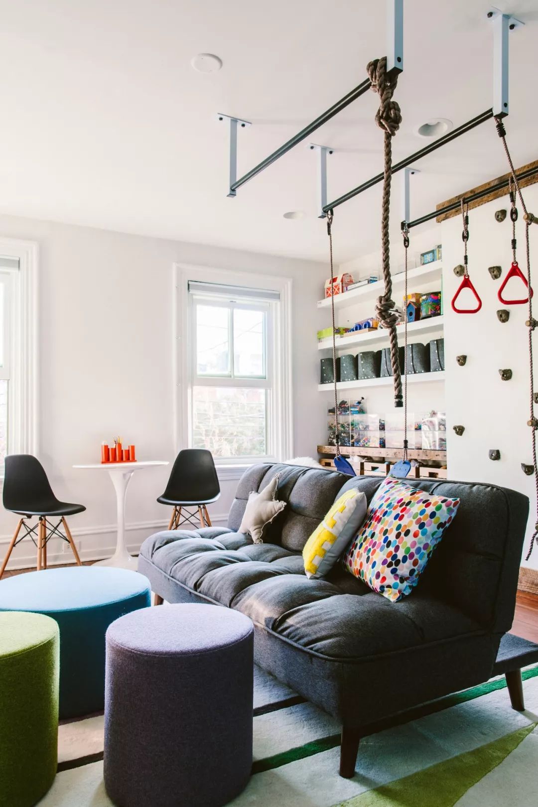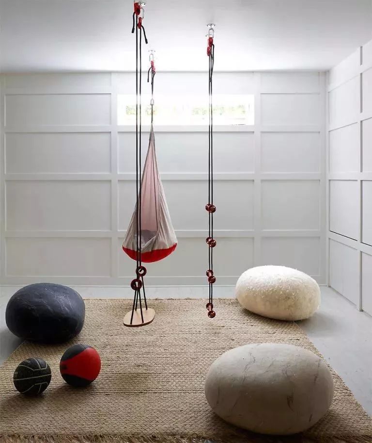 游乐场空间,为儿童提供了在室内锻炼身体的新方式。攀岩、秋千、吊绳,都可以成为充满童趣的装置。
