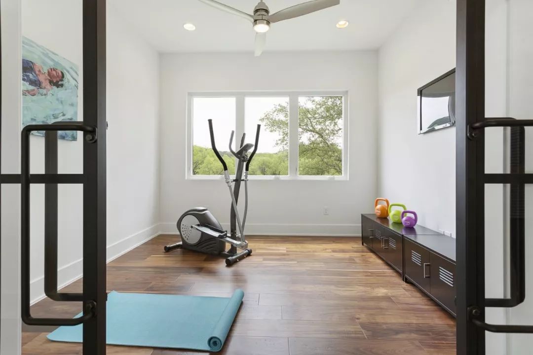 将健身房与另外一个区域结合在一起,不仅提供了更大的实用性,节省空间,还为住宅带来有趣的氛围。