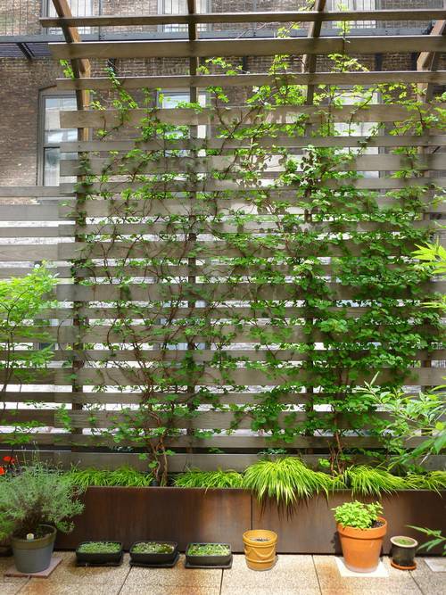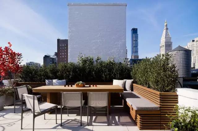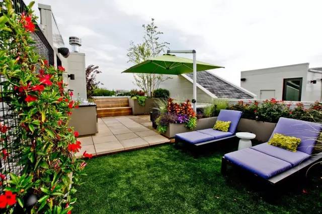 围绕的护栏摆满绿植则会让你有回归大自然的感受,还可以种植些矮小的攀缘类植物,露台上不宜选择枝叶繁茂的大型木本攀缘植物,由于蒸发量较大,应选择抗旱性强以及比较粗放的植物种类和品种。