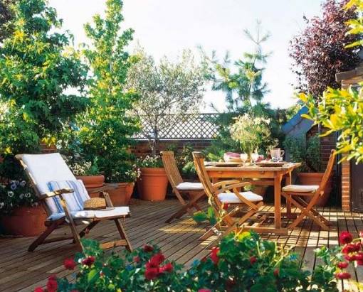 也可以是一个秘密花园,如果露台空间较大,也要做的简单点,不要想着在露台上做假山水池什么的,可以简单的种些大树木或者灌木,规划好基本格局可以套种植物和蔬菜,花草树木相得益彰。
