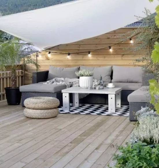 如果你喜欢木质的温暖,防腐木是你露台地面铺贴的不二之选,很多公园,山道都用到防腐木,这种材质用在露台,风吹日晒都不怕。