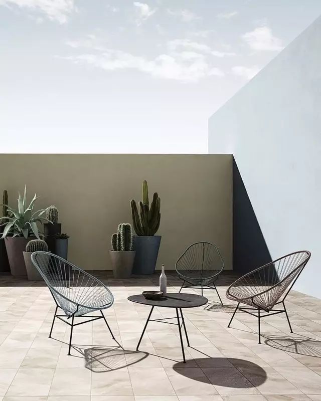 可以选择木质的室外座椅,它们通常以柚木,乔木,桃木为主要材料,经过防腐处理的椅子有优良的抗压能力,而本身的木质纹理也为家具添加了一份自然气息,户外使用很合适。