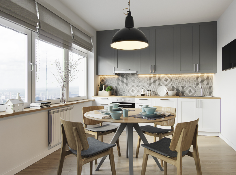 L字型厨房的优势,就是备餐台、切菜台空间增加,转角空间的下方可以多做收纳,重点是空间呈现L字型后,可以跟旁边的中岛台或者是餐厅区域连接,让整个空间动线更为顺畅。
