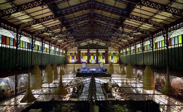 实际上它建造在一个巨大的方形底座上,每边有10个古典拱门,最高的高度近30米,由三个通道组成的大楼。1874年开业的时候有511个摊位,但在1881年,市场的内部摊位系统化分,海鲜,肉类,蔬果,生熟食品分隔,直至今日依然按照这些类别划分区域。