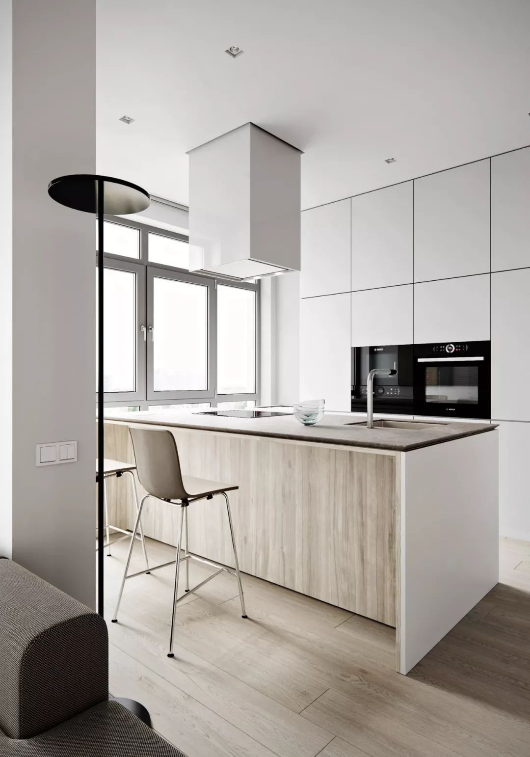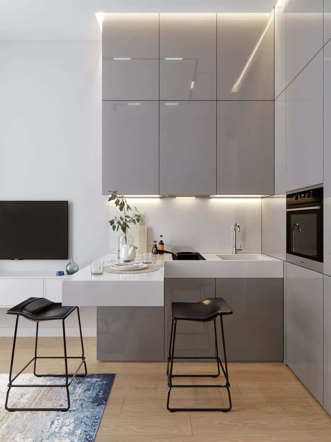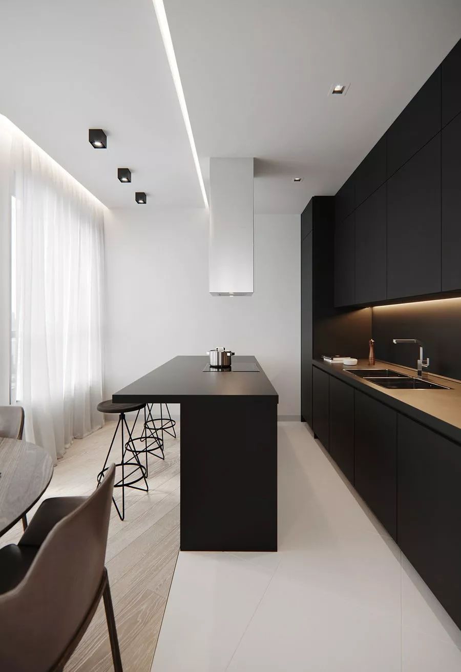 岛台并不是只有大户型才有,一般5-6平米的厨房也可拥有一个中吧台。
