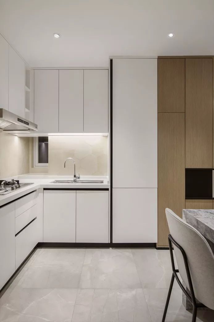 如今,橱柜拉手、拐角收纳、智能家电等大多都做成隐藏式,比如用按钮或者隐藏式拉手代替之前的五金拉手,一体化的设计形式,让厨房整体看起来更有高级感。