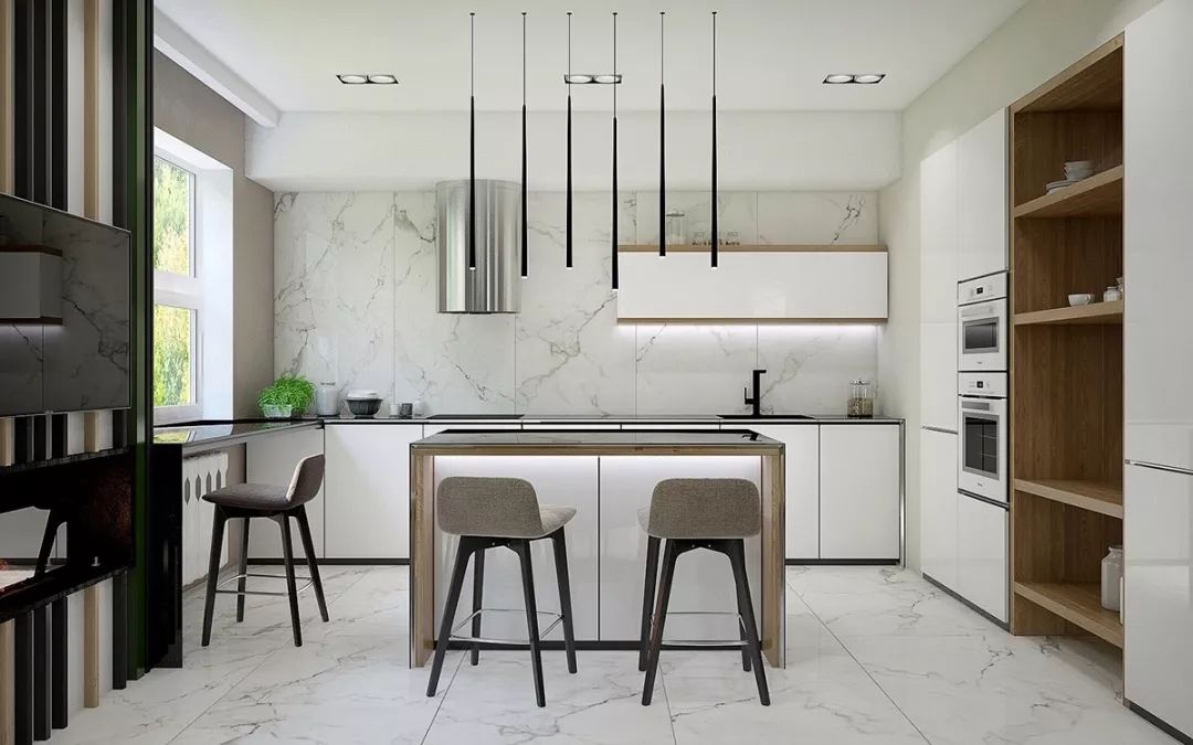 如今,客厅慢慢的被电子设备填满,餐厨空间成了全家人一天沟通最多的空间,作为最重要的活动空间之一,厨房功能不再是过去仅仅烹饪一种功能,它还有社交、沟通等属性。