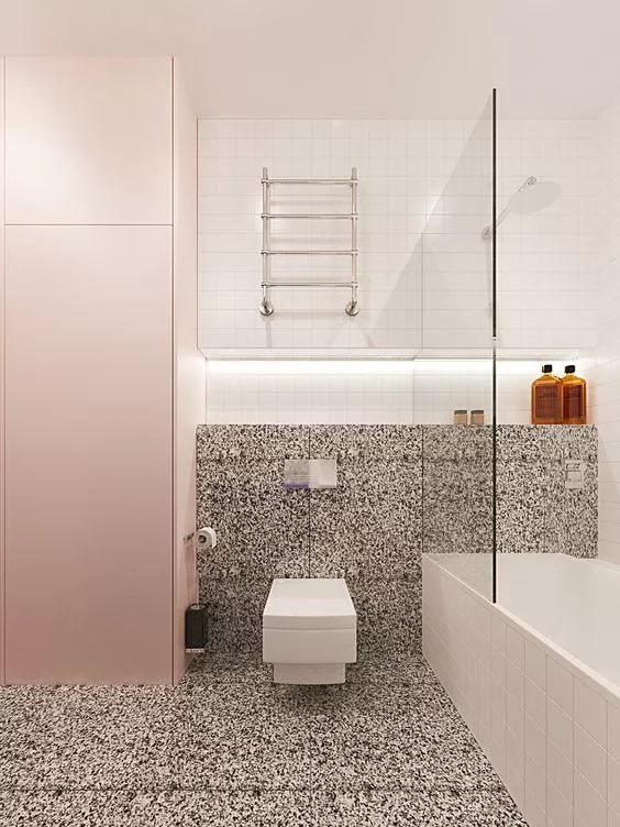 常规的卫生间,普遍都是黑、白、灰三个色系,但是随着越来越多年轻人的家居需求,他们对时尚的要求,使人们的审美也发生了很大的改变,更多的业主选择了一些个性化的彩砖或超级时尚的水磨石来打造新型卫生间。