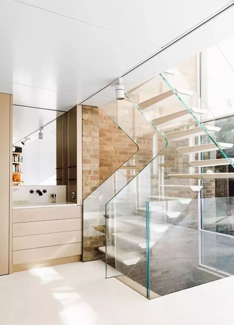 通透的玻璃楼梯在视觉上让空间没有阻隔,十分通透。