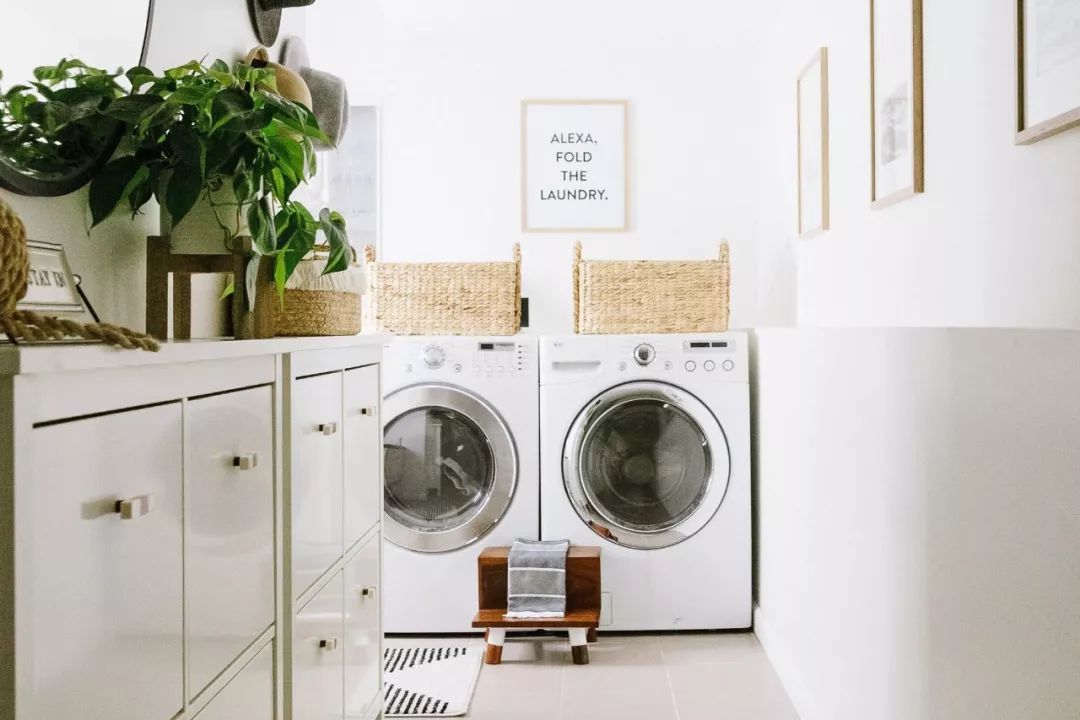 当家里人比较多,一个专门摆放清洁用品和家电的房间就显得格外重要。通过购买或者DIY台面,将衣服直接从烘干机中取出折叠,让家务在有限的空间里更加简洁轻松。