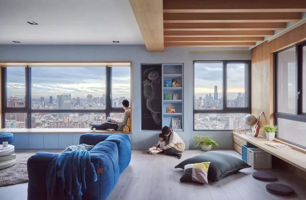 所以,对于不想把电视作为客厅的中心的家庭,可以直接把这个空间在具有基本功能的基础上,直接设计成满足游戏区,一家人呆在一起的时候可以不看电视、放下手机,一起聊聊天,陪孩子玩玩具,关系会越来越亲密的。