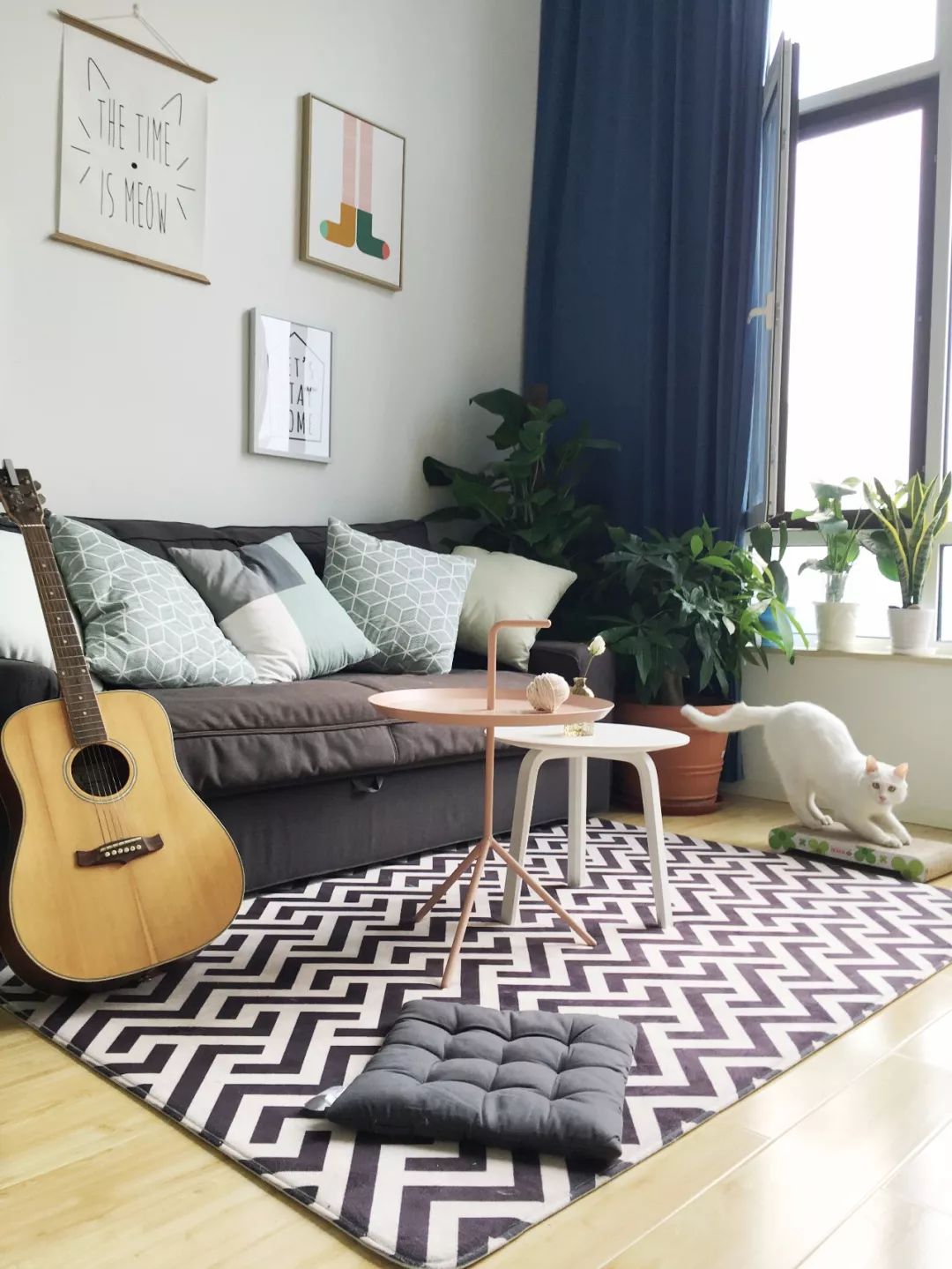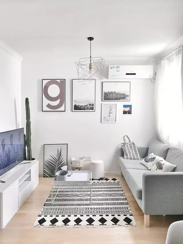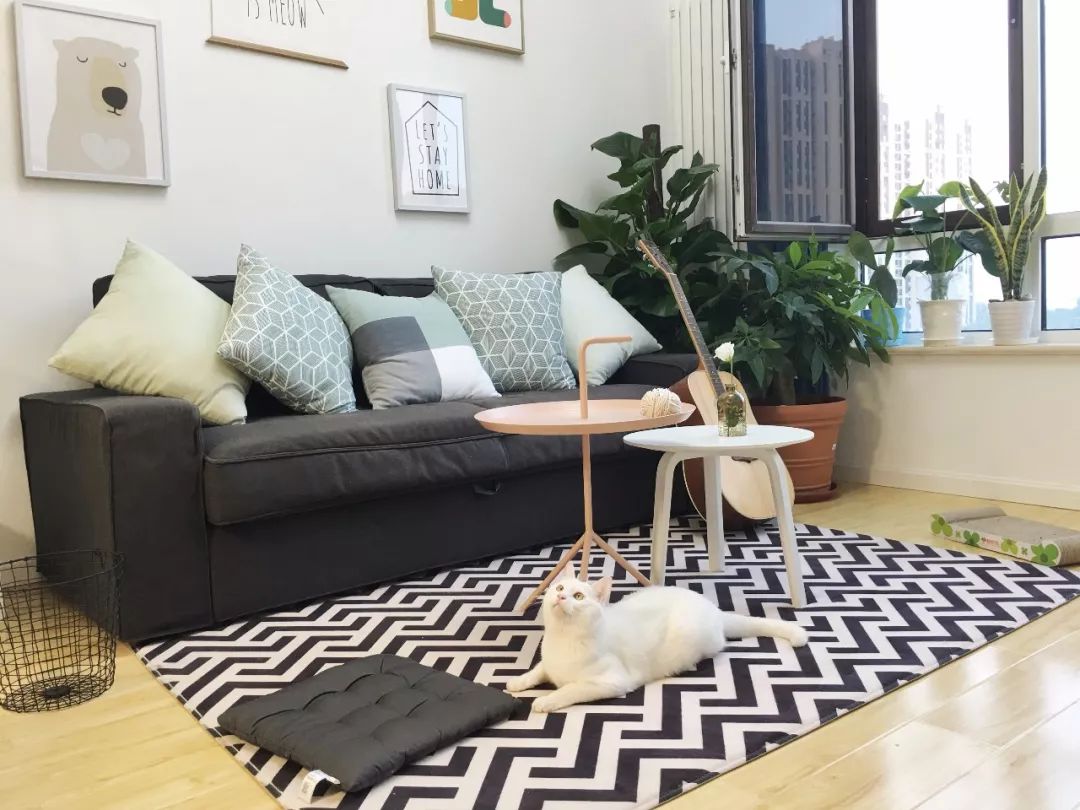 元茜姑娘家的客厅利用率不高,大部分时间两个人都是在工作区呆着的,就压缩看客厅面积,沙发也选择了沙发床,朋友来的时候可以睡在这里,茶几也选择了好挪动的网红小茶几。