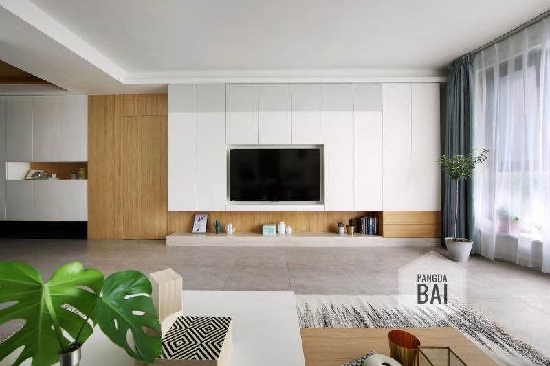 于是一个设计简洁、收纳充足的电视背景墙,可以让客厅更具实用性。