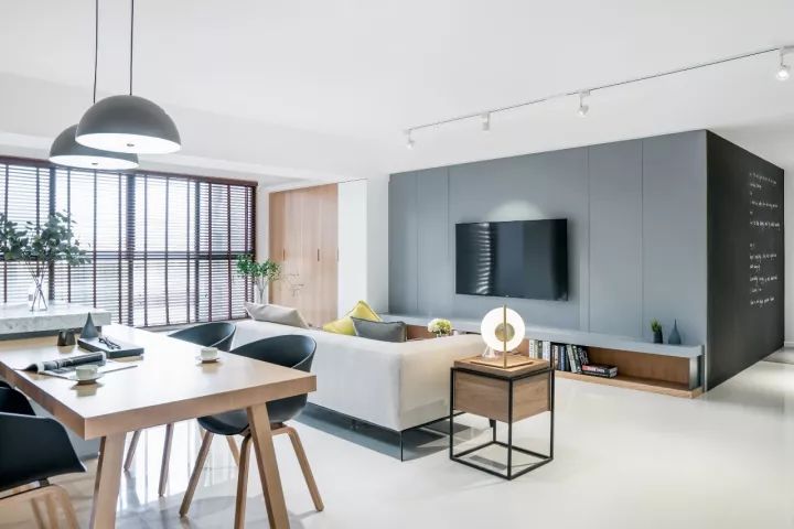 大部分电视墙以装饰性为主,强调造型好看或极简,但对于很多需要大面积储物空间的家庭来说,电视墙除了好看外,还要注重功能性, 设计也是为了让生活更加简洁舒适。
