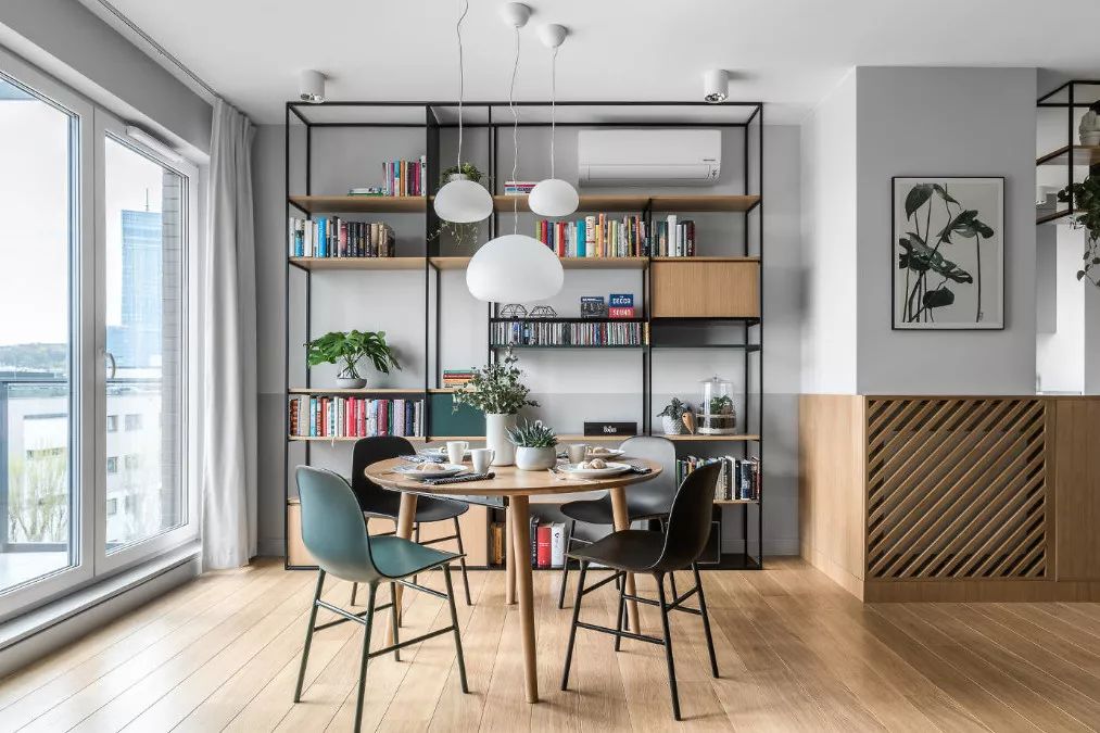当然不是每家每户的客厅都有足够的位置摆放书架,除了客厅,你还有餐厅这个选项,这时可以把餐厅的桌子变身工作台,一物多用,实用性满分!