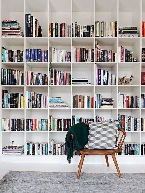 书架布局尽量简化,避免视觉上的杂乱感,如果想区分图书,可利用书立进行分隔。