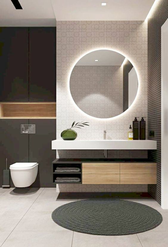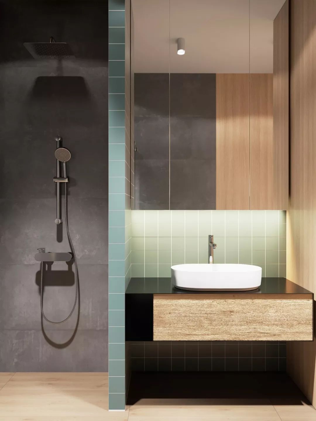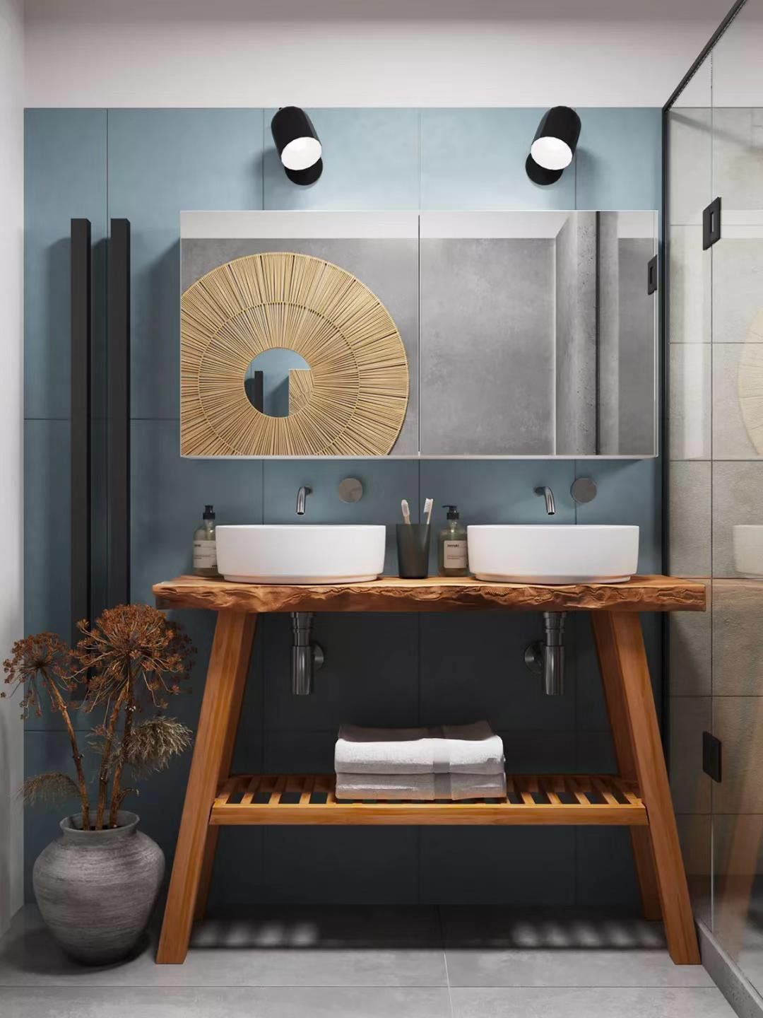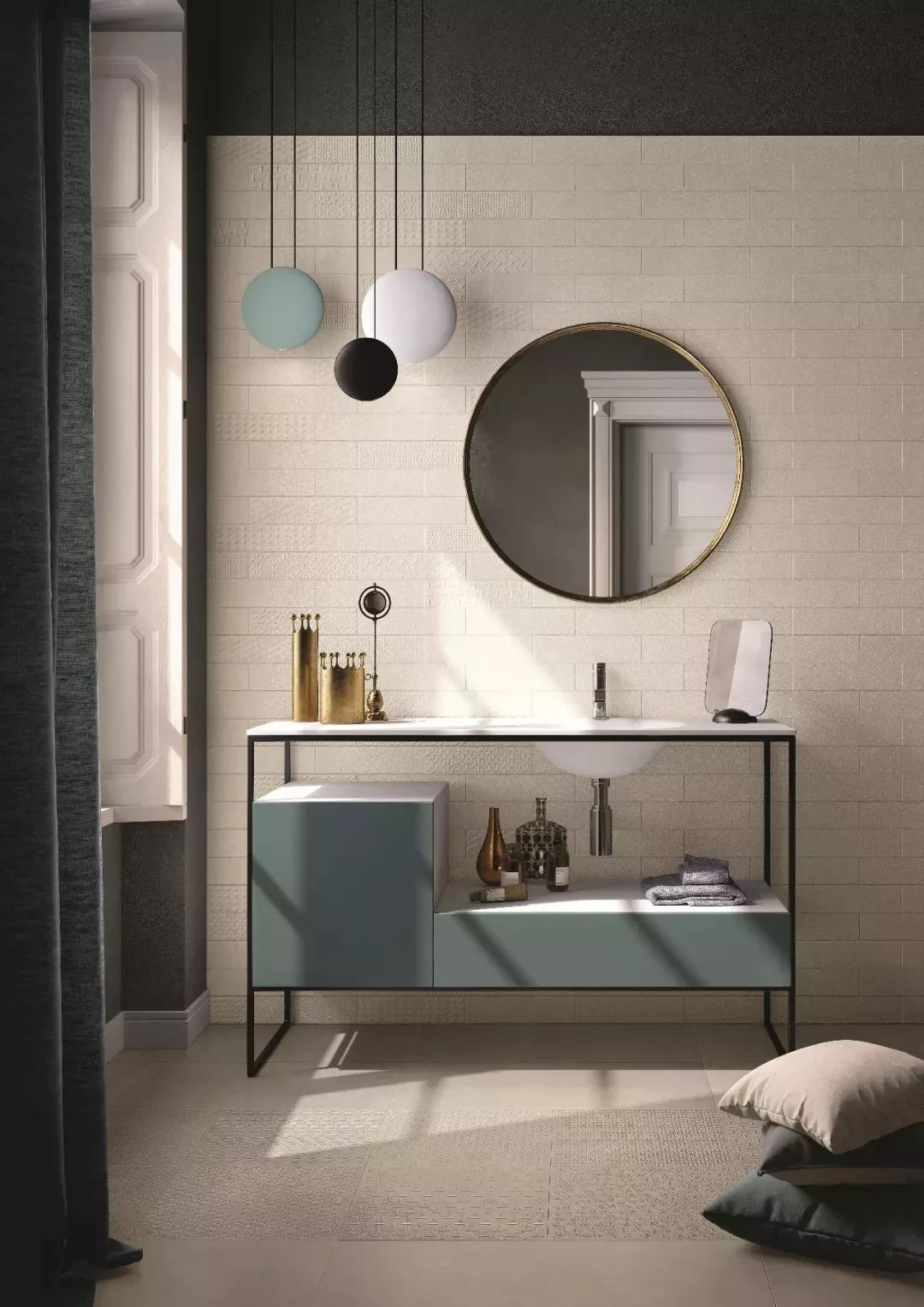 下面是当下比较流行的洗漱台设计方式,看看是不是比国内很多样板房的卫生间好看多了。