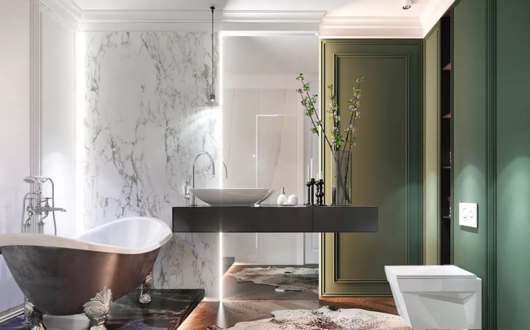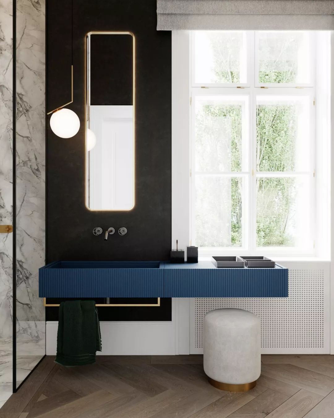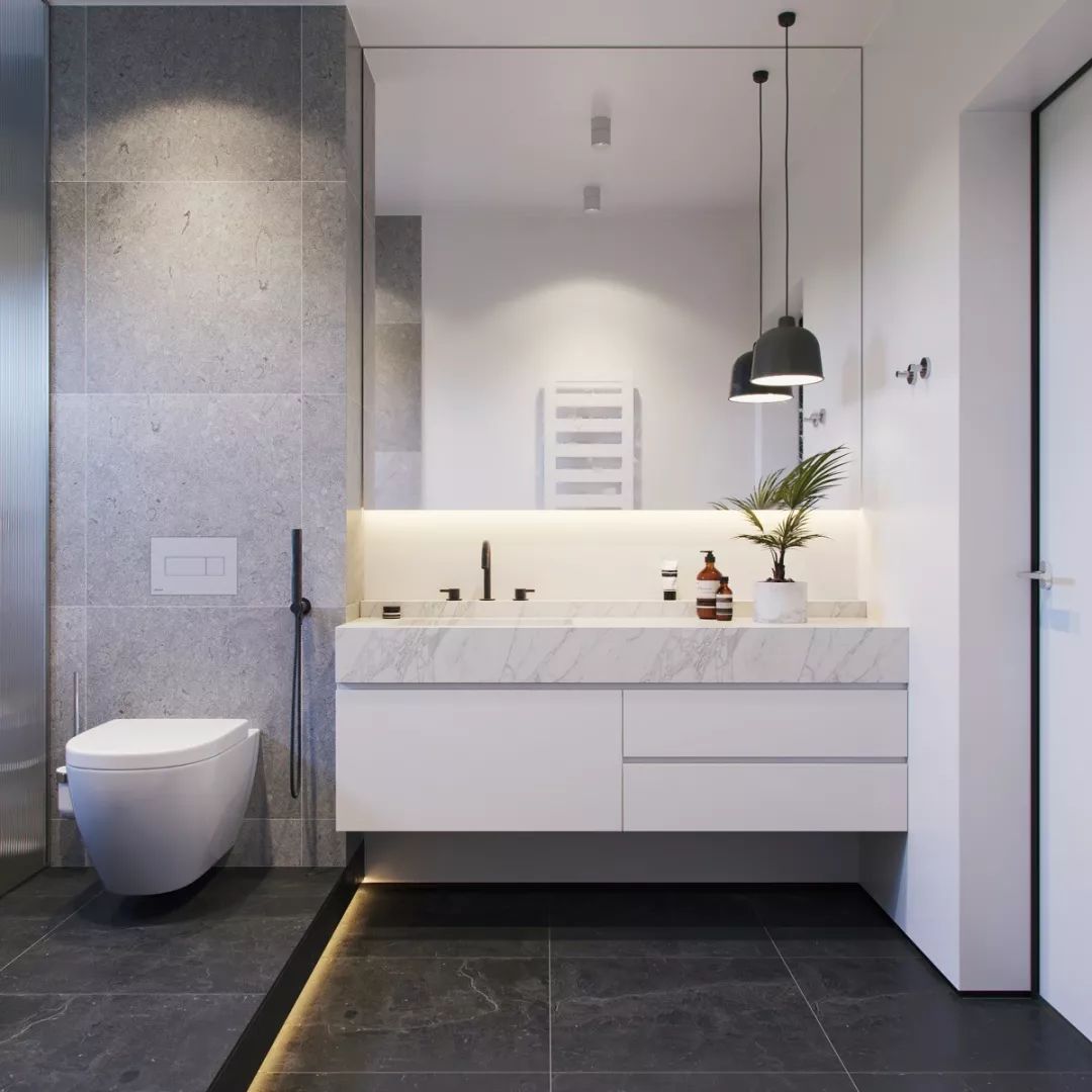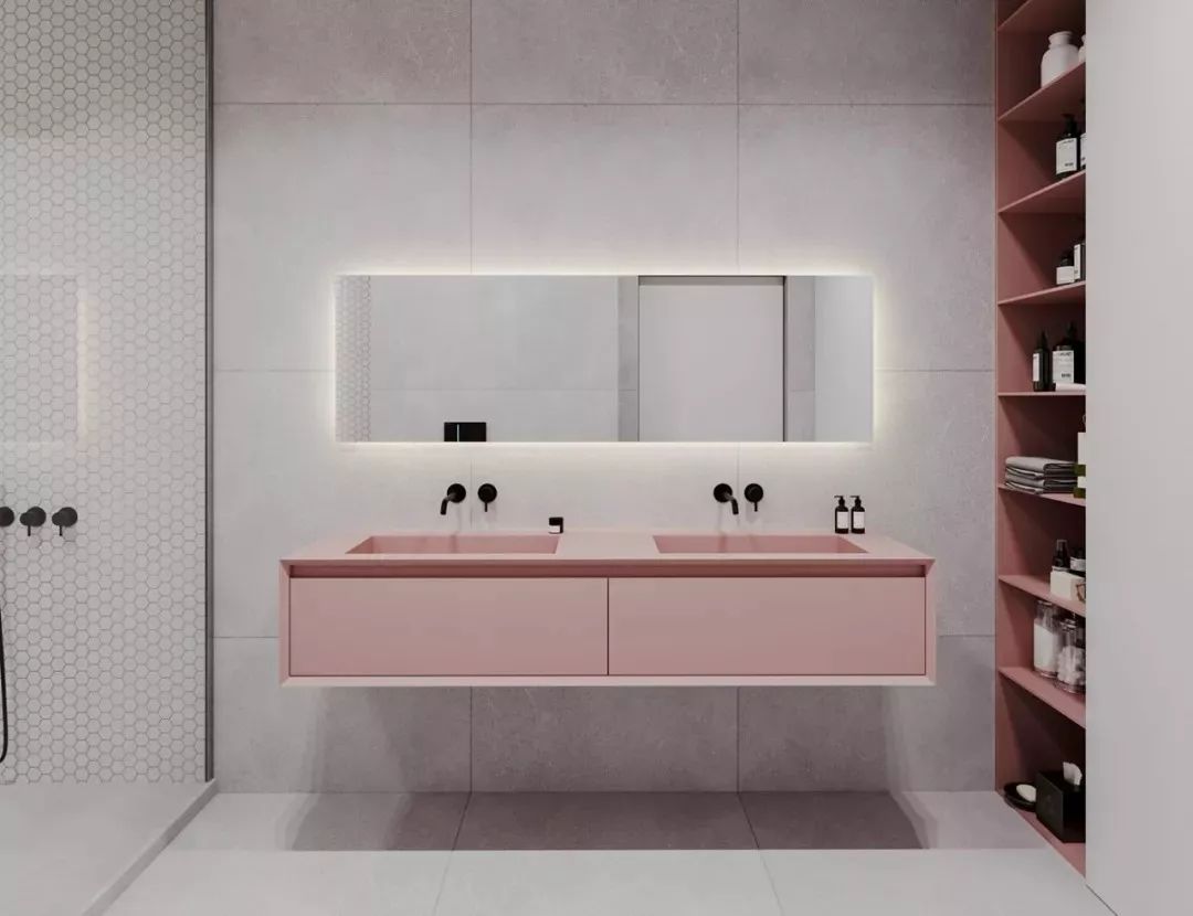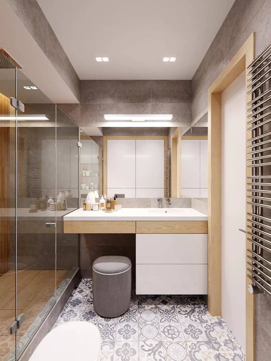 下面是当下比较流行的洗漱台设计方式,看看是不是比国内很多样板房的卫生间好看多了。