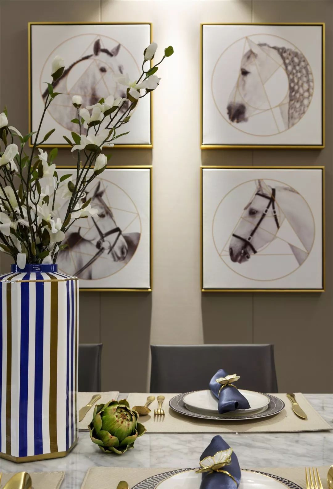 黑白几何图形的挂画形成强有力的视觉冲击,家具、配饰尽显简约与流畅。