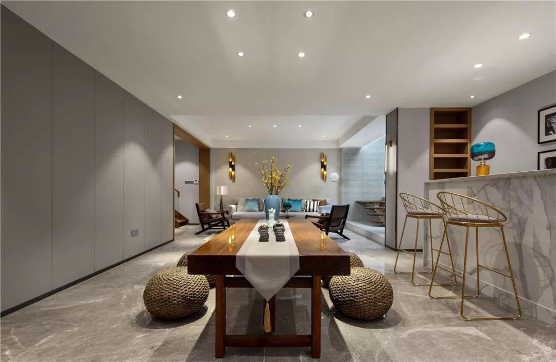 中式的茶席与西式的水吧,传统与时尚,各得其所,相得益彰。泡一壶春茶,斟一杯红酒,放下工作的忙碌与疲倦,享受此刻带来的充盈与娴静。