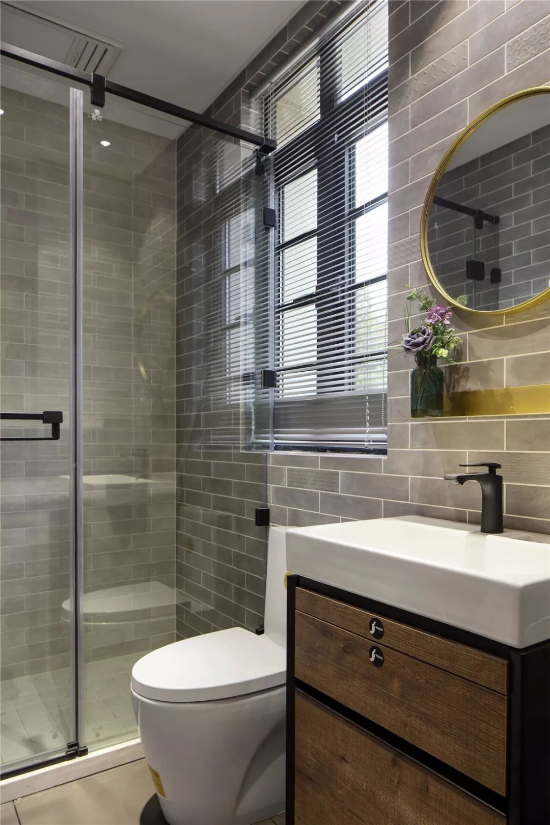 儿子的卫生间,墙面用灰色立体瓷砖铺贴彰显气质,让整个空间多了些许硬朗。