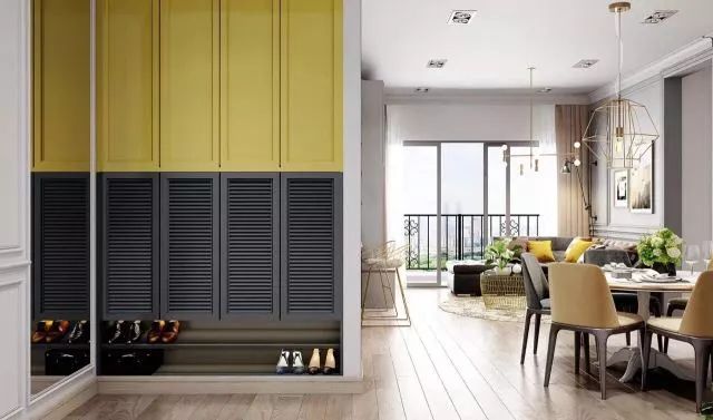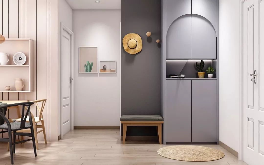 而且兼具阻挡视线、过渡缓冲、收纳换鞋、