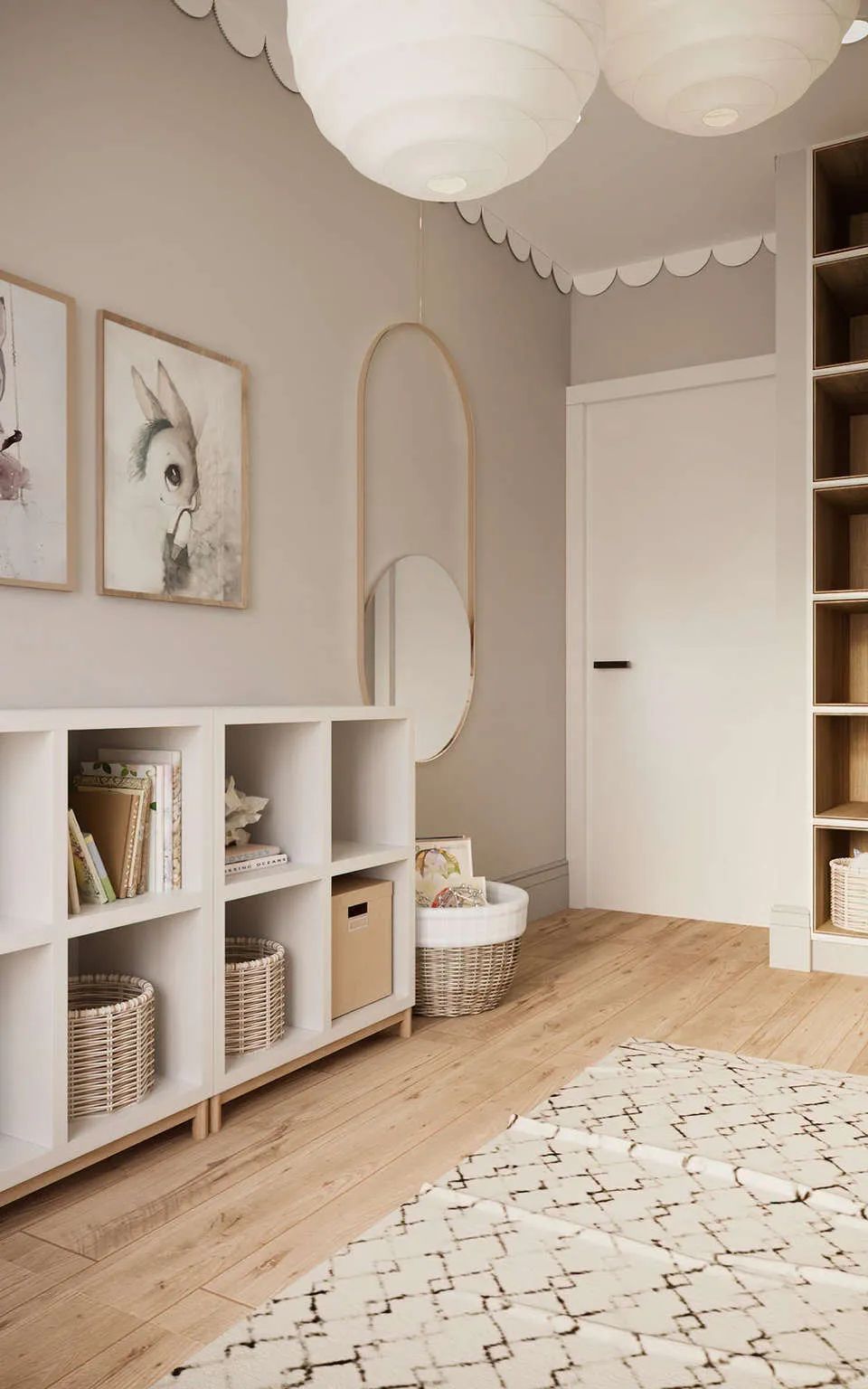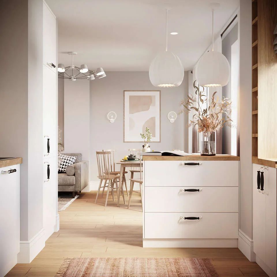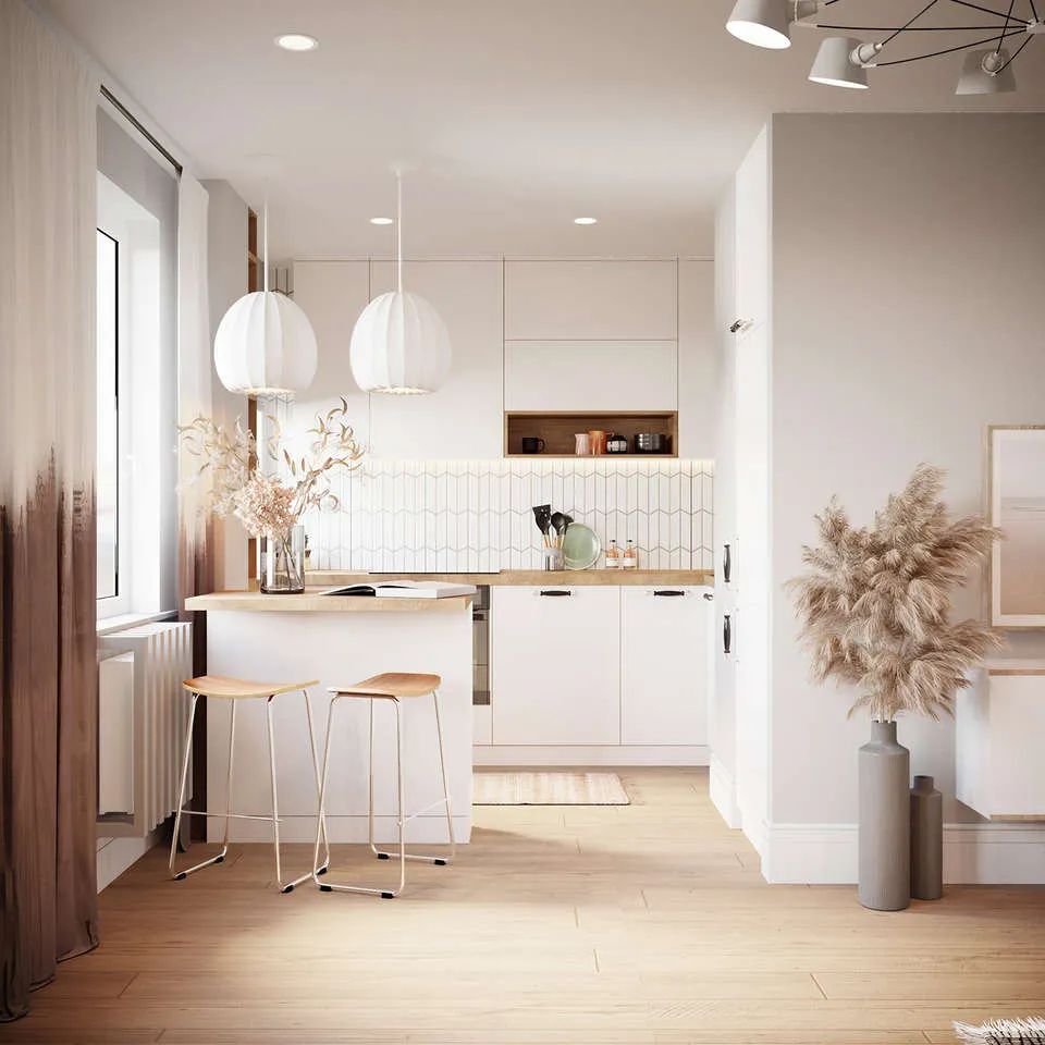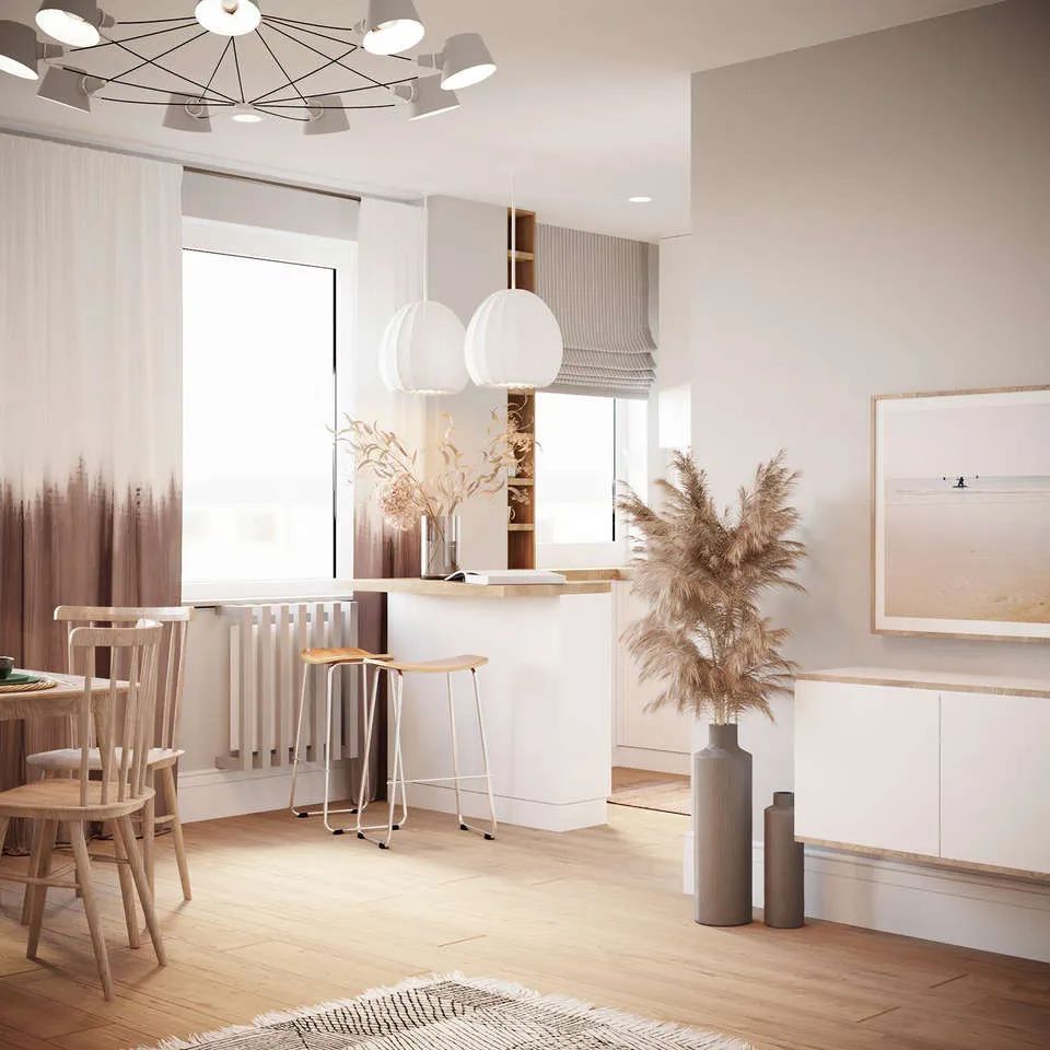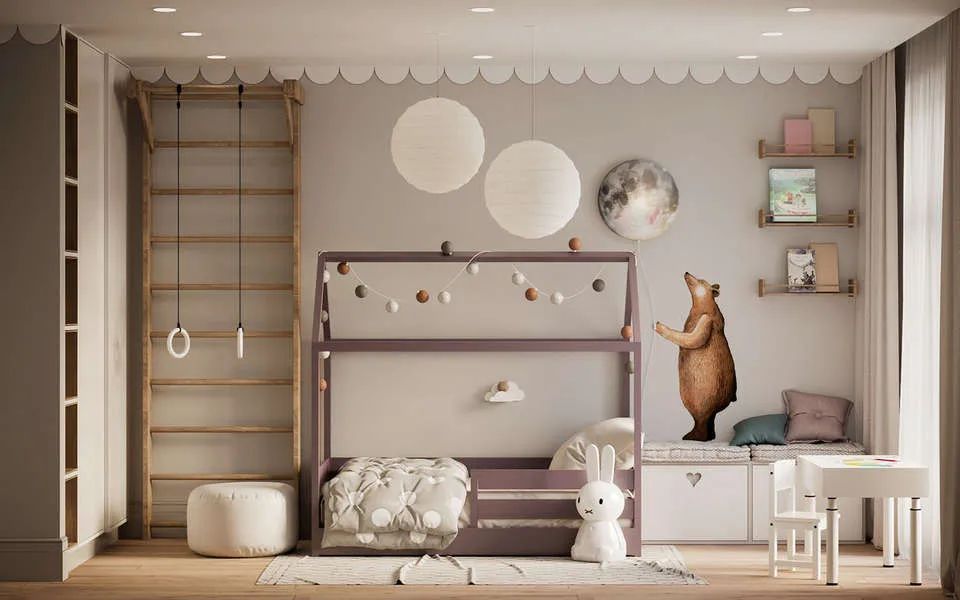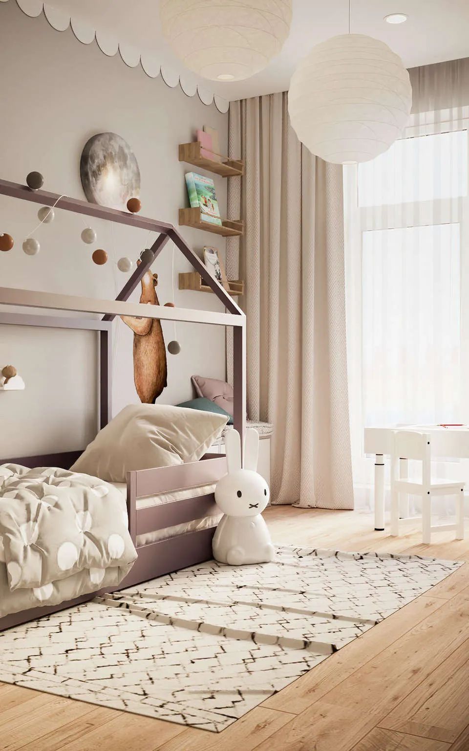 一 起 设 计 一 起 品 味 生 活 本案是一套69平方米的两居,由一套老房翻新而来,屋主当时买下这套房子,主要是出于女儿上学方便的考虑。夫妻俩本身非常忙,没有时间操心装修,索性就把这件事完全交给设计师托管。 屋主的诉求只有两个—— 1、要温馨,灯光要舒适、治愈。 2、要满足一家三口大量的储物需求,尤其开放式厨房。 设计师在规划空间时,拆除了厨房与客厅中间原本的夹层,做了小吧台。这样一来整个客餐厅一下子视野就开阔起来。 公共空间以纯净的白色和浅灰色为主,简约的设计构建了一个贴近自然的清新空间。 穿过走廊,就进入了客餐厅区域。开放式空间,将吧台、厨房、餐桌的功能巧妙地集中在了一起。 灰色沙发和几何图案地毯完美点缀在角落里,无茶几设计更为此处释放更多活动空间。 对面沙滩壁画搭配白色储物柜,让这个区域充满后现代简约之感。视线延伸,充满想象力。 开放式厨房以中间小吧台为界,形成流动动线。 为了增存储空间,吧台一物两用,对内是储物柜,对外是吧台。 厨房墙壁一侧做了通顶柜,对厨房功能性做了很好的补充。 菱形竖条纹瓷砖简洁、清新,搭配白色极简吊柜,渲染出温馨又不失质感的新意。 主卧粉刷了屋主最爱的奶咖色,搭配藤制吊灯,自然与舒适并存。 悬挂式床头柜既是女主的梳妆台,还是她的床头柜,一物多用。 小业主是一个4岁男娃,平时喜欢攀岩、运动,设计师为了满足他的心愿,在室内设计了一副吊环,以满足孩子的玩乐需求。 大熊手握“气球壁灯”,仰望星空。夜晚来临,隐隐光源 ,为空间带来更多梦幻之趣。 拱形小房床造型简洁,灯饰缠绕,细节之处彰显设计师的用心。 这样的治愈系家, 你心动了吗? 宇宙再庞大却始终不值得我们布置, 唯独家值得我们漫游...