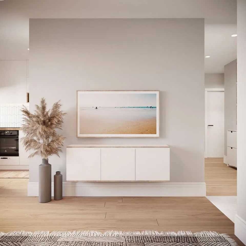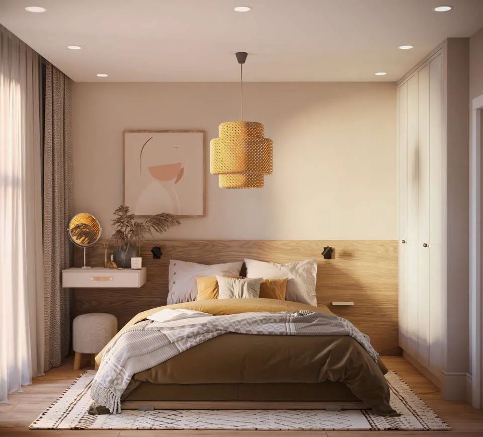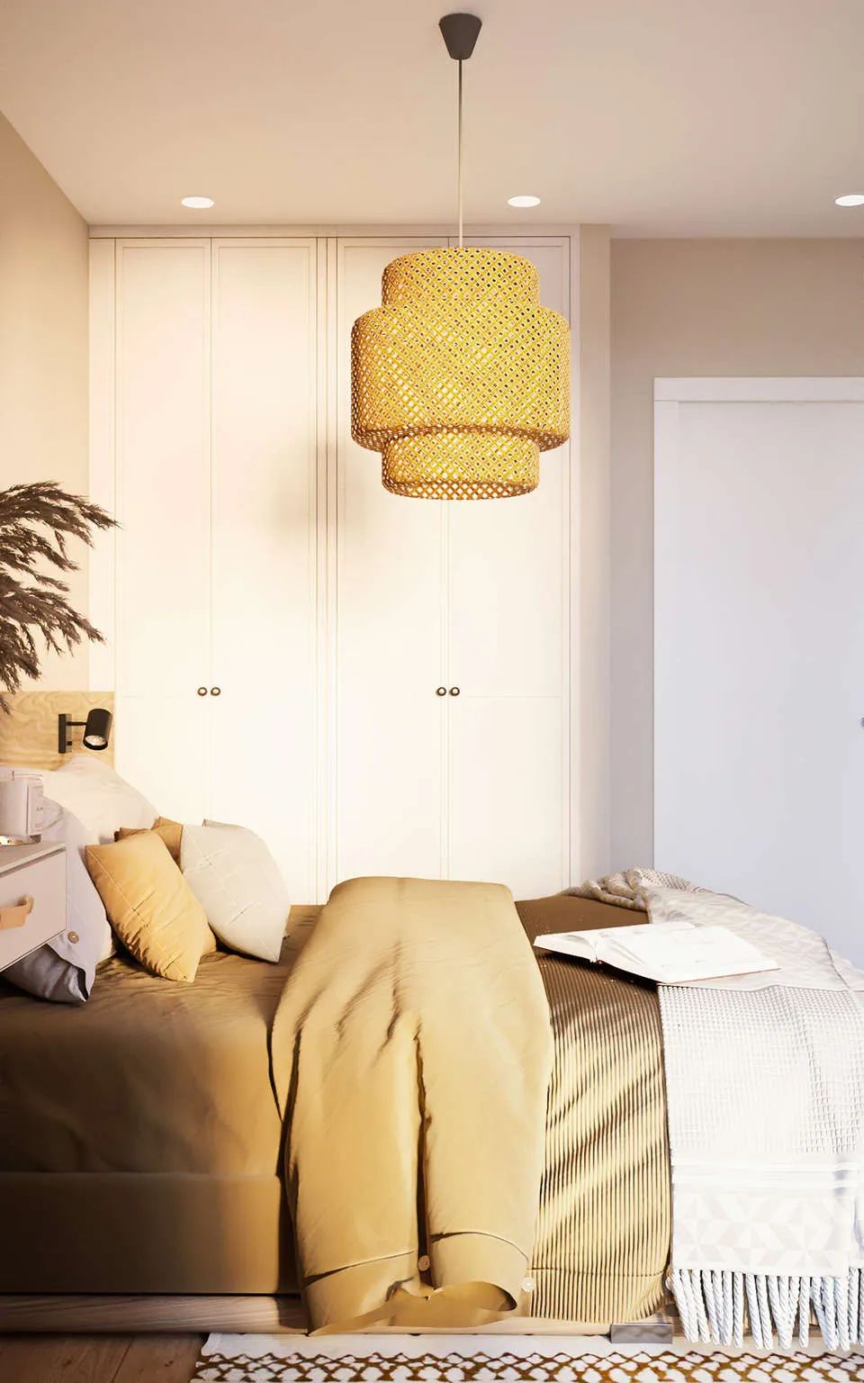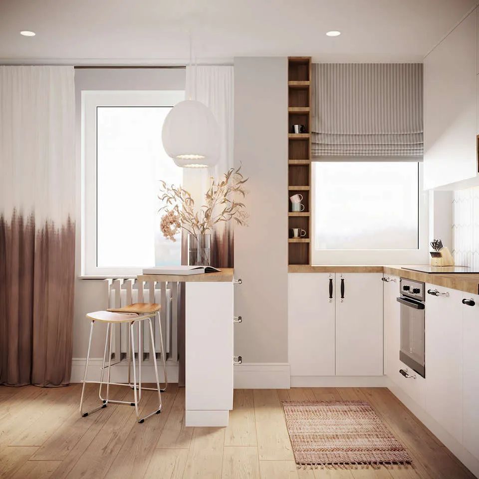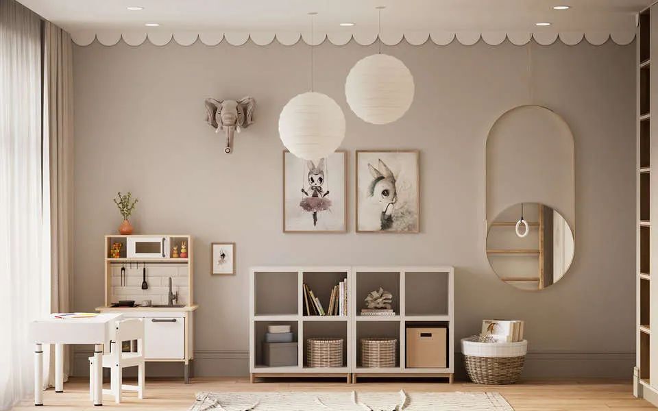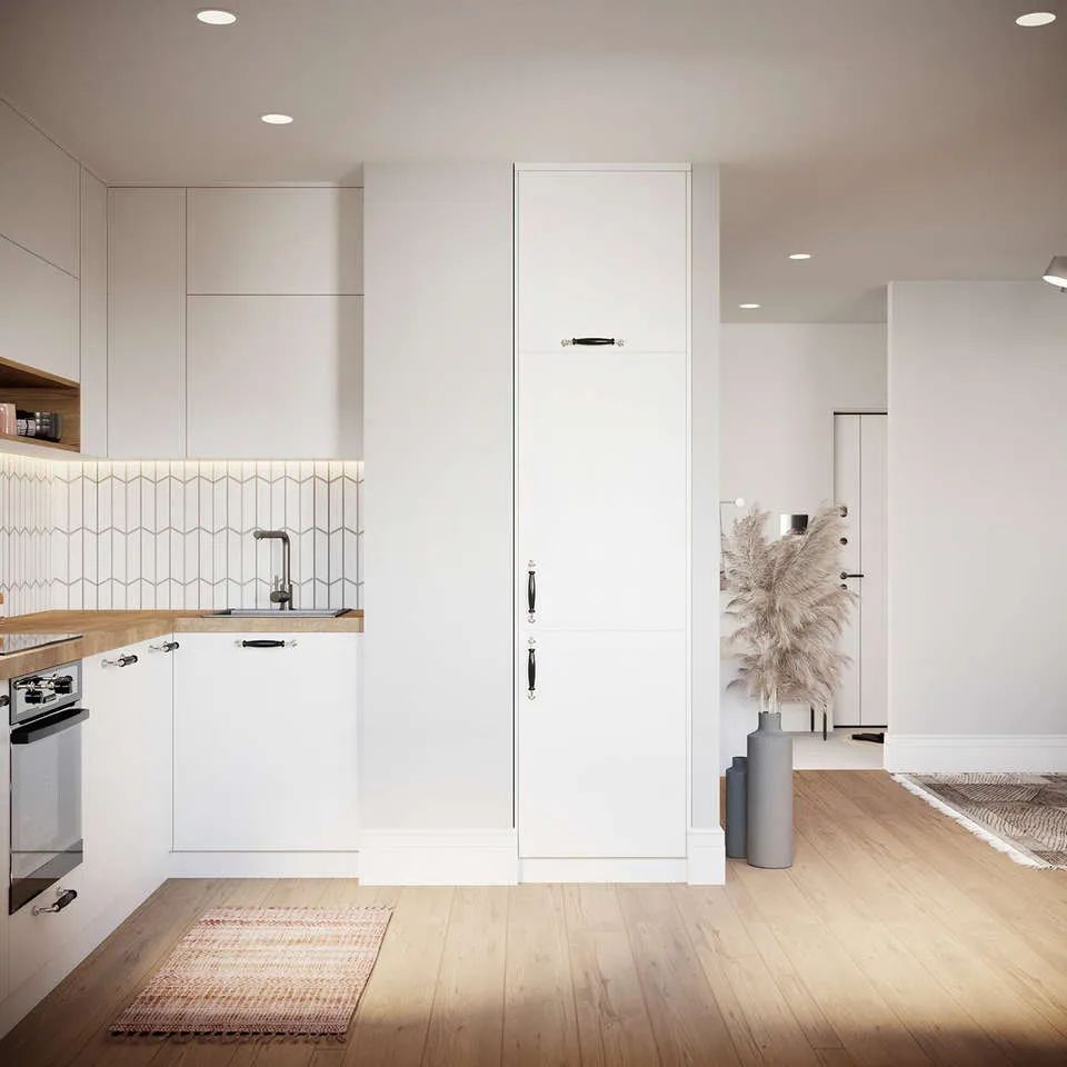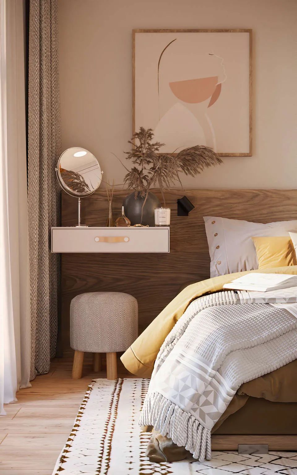 一 起 设 计 一 起 品 味 生 活 本案是一套69平方米的两居,由一套老房翻新而来,屋主当时买下这套房子,主要是出于女儿上学方便的考虑。夫妻俩本身非常忙,没有时间操心装修,索性就把这件事完全交给设计师托管。 屋主的诉求只有两个—— 1、要温馨,灯光要舒适、治愈。 2、要满足一家三口大量的储物需求,尤其开放式厨房。 设计师在规划空间时,拆除了厨房与客厅中间原本的夹层,做了小吧台。这样一来整个客餐厅一下子视野就开阔起来。 公共空间以纯净的白色和浅灰色为主,简约的设计构建了一个贴近自然的清新空间。 穿过走廊,就进入了客餐厅区域。开放式空间,将吧台、厨房、餐桌的功能巧妙地集中在了一起。 灰色沙发和几何图案地毯完美点缀在角落里,无茶几设计更为此处释放更多活动空间。 对面沙滩壁画搭配白色储物柜,让这个区域充满后现代简约之感。视线延伸,充满想象力。 开放式厨房以中间小吧台为界,形成流动动线。 为了增存储空间,吧台一物两用,对内是储物柜,对外是吧台。 厨房墙壁一侧做了通顶柜,对厨房功能性做了很好的补充。 菱形竖条纹瓷砖简洁、清新,搭配白色极简吊柜,渲染出温馨又不失质感的新意。 主卧粉刷了屋主最爱的奶咖色,搭配藤制吊灯,自然与舒适并存。 悬挂式床头柜既是女主的梳妆台,还是她的床头柜,一物多用。 小业主是一个4岁男娃,平时喜欢攀岩、运动,设计师为了满足他的心愿,在室内设计了一副吊环,以满足孩子的玩乐需求。 大熊手握“气球壁灯”,仰望星空。夜晚来临,隐隐光源 ,为空间带来更多梦幻之趣。 拱形小房床造型简洁,灯饰缠绕,细节之处彰显设计师的用心。 这样的治愈系家, 你心动了吗? 宇宙再庞大却始终不值得我们布置, 唯独家值得我们漫游...