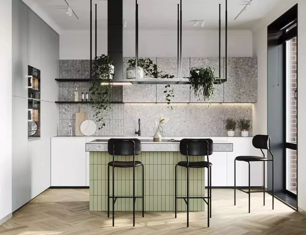 那应该如何规避开放式设计带来的弊端呢?大多数人都是把炒菜区单隔出来,作为中厨区,而西厨的吧台与餐厅融为一体,这样既好看,又能大大减少“油烟”的困扰。
