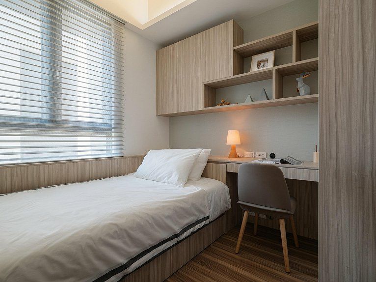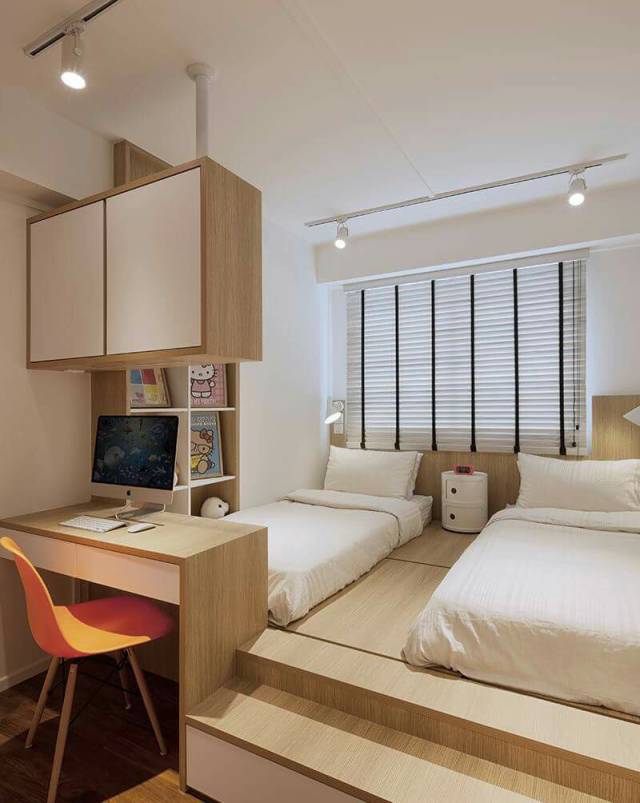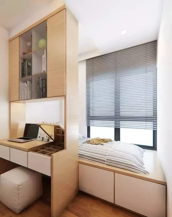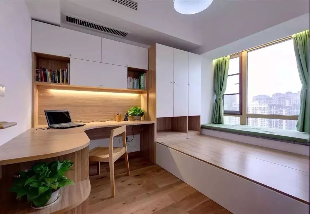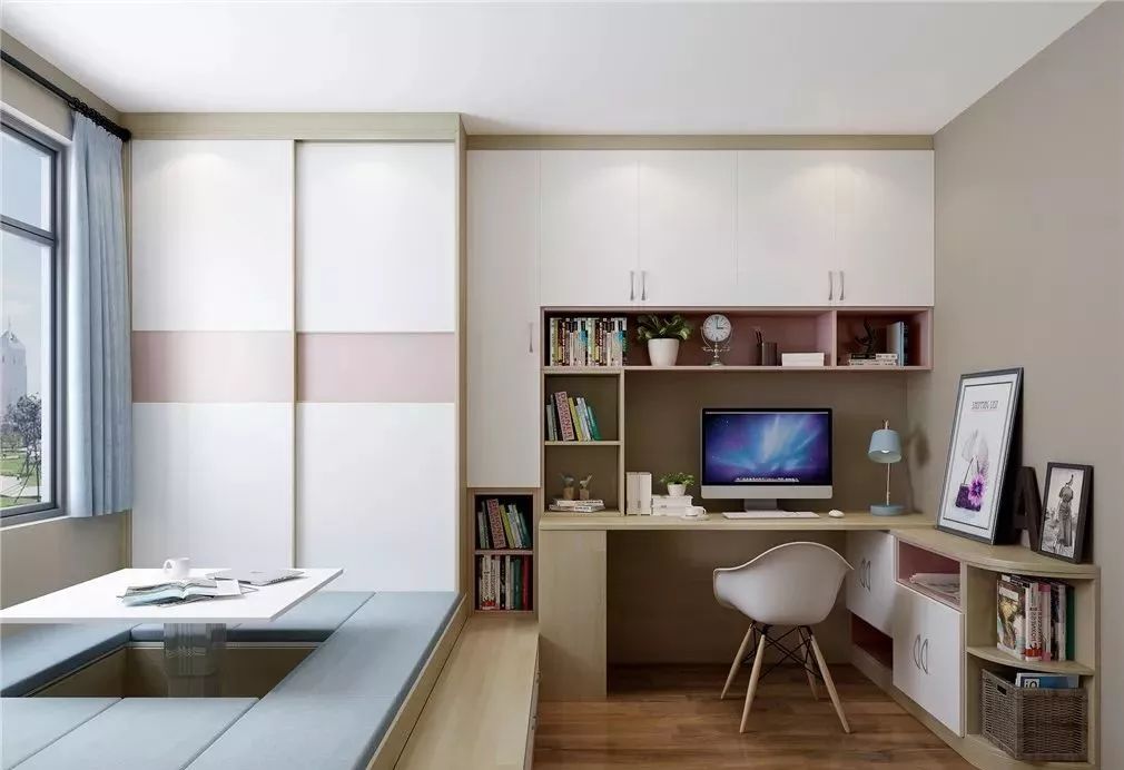 其实只要我们转变思维,利用设计来实现我们的梦想也不是不可能的,比如卧室里设置榻榻米地台,书桌衣柜一体设计,这样不仅可以收纳衣物,也可以用来办公学习,一举多得。