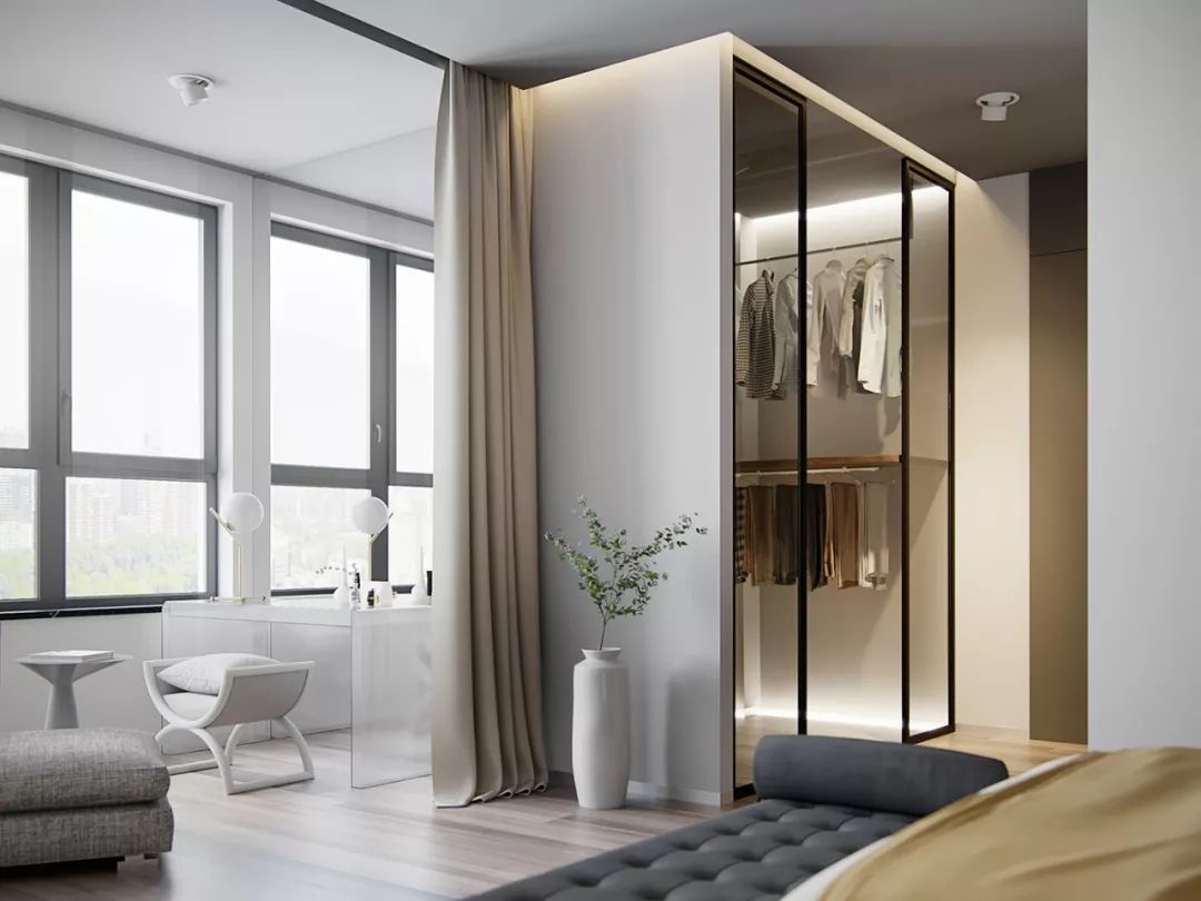 当今的家具圈,都讲究消隐,外在简洁,内在有强大的收纳能力。而嵌入式衣柜在上述基础上还能将奇葩户型加以拯救,它能将墙面原有的槽点化腐朽为神奇。