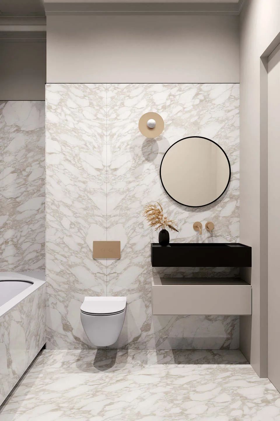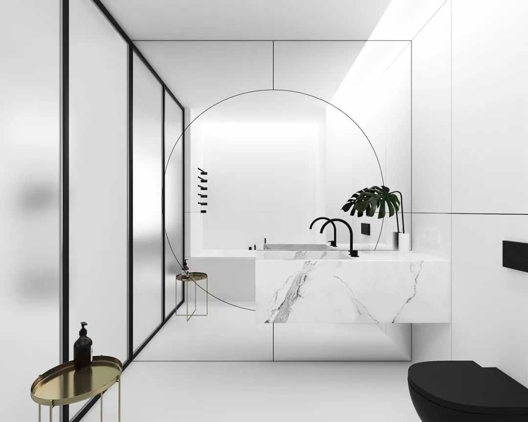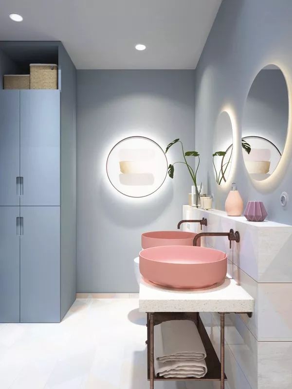 悬空洗手盆、马桶是一个很好的方案,它底部的空旷就像是空气流动的出入口,适度留白,让一切告别笨重。