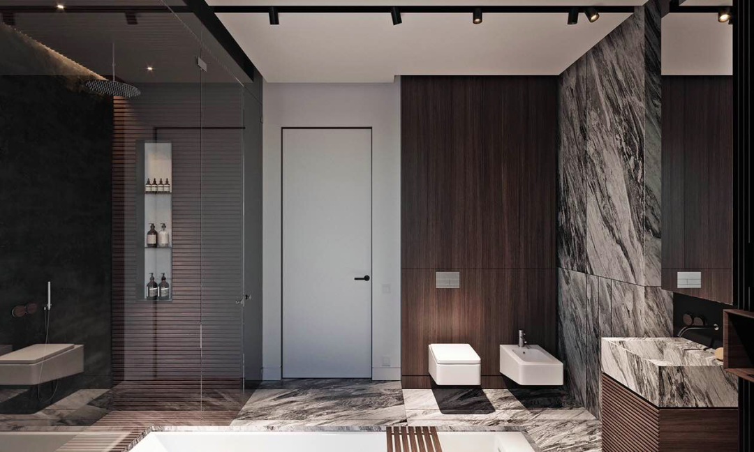 辅助光会让空间更明亮,我们可以在洗漱区、马桶区、淋浴区加适当辅助光,整个空间主光源和辅光源相互配合,空间既有层次感又明亮。