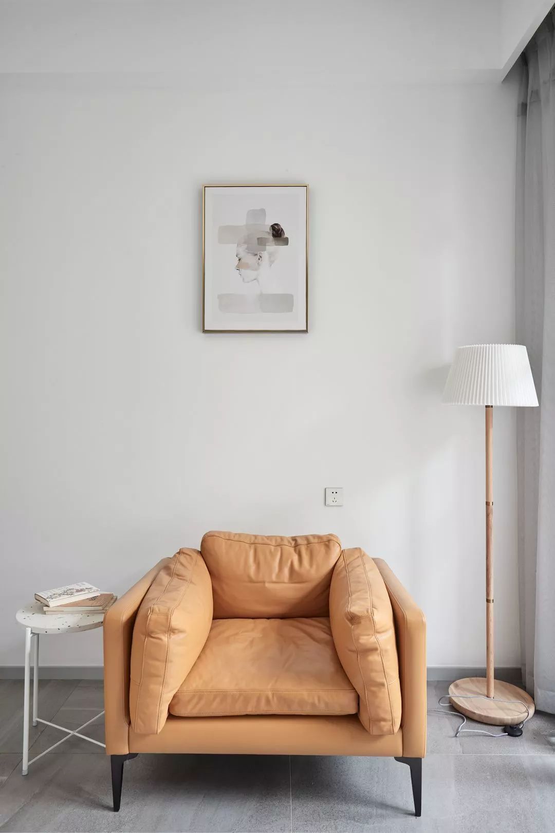 阅读区的单人棕黄色沙发,点亮了整体空间。