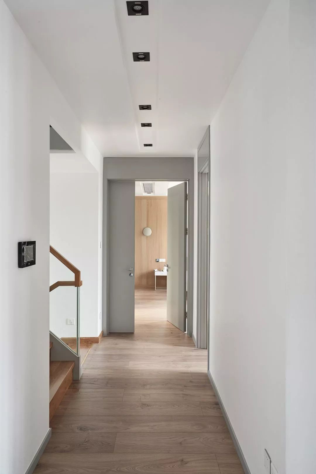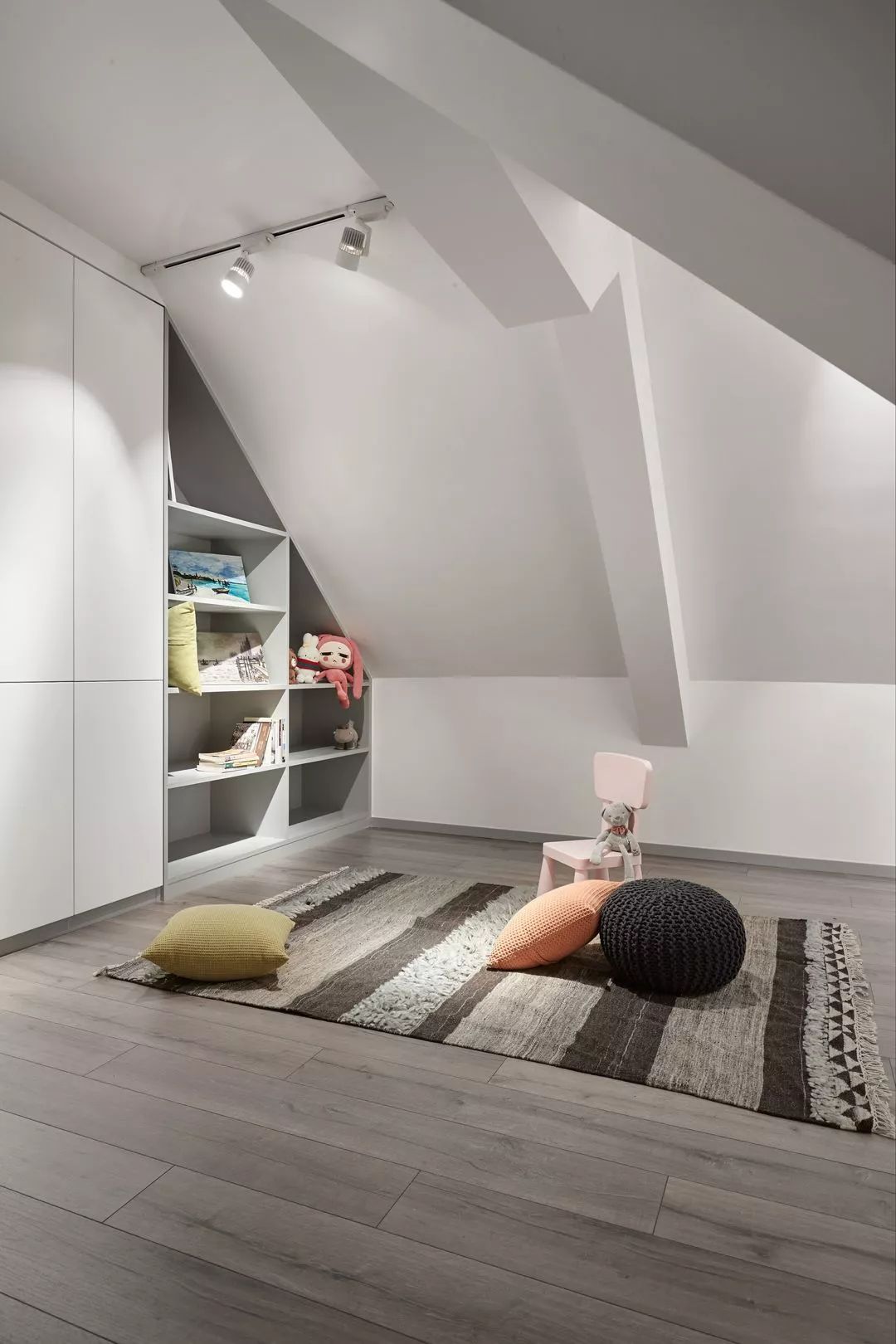 在二楼主卧和儿童房上方搭建出来的小阁楼,作为一小方活动区。整个楼梯和公共区域轨道都布置了感应灯。