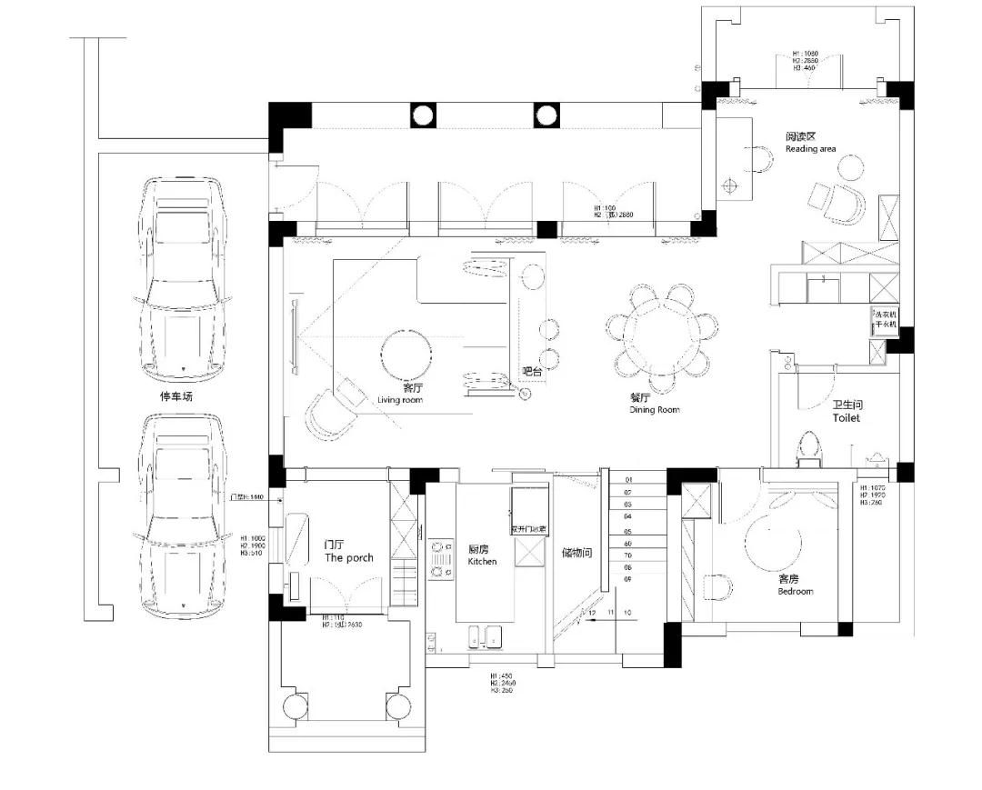 餐厅和客厅之间做了一个吧台,既可以补充客厅的座位,又可以分割两个空间。吧台留出直饮水水槽,方便日常使用。错落的吊灯增添线条感。