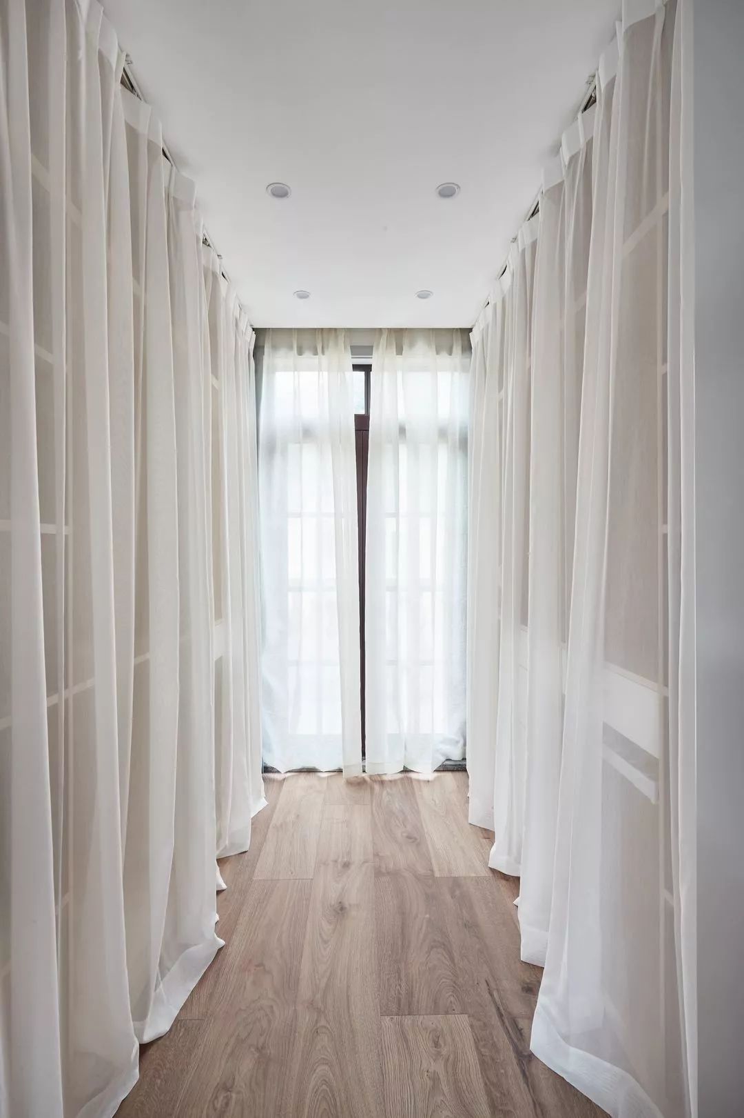 考虑到放置衣物的美观和实用性,衣帽间是开放设计,放弃了柜门,以轻纱作遮挡,视觉上轻柔不压抑。