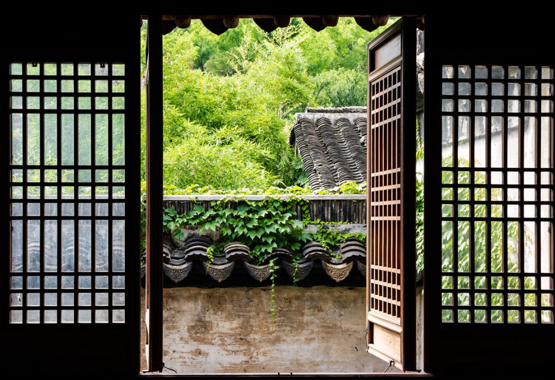 白墙青瓦,木栅花窗,清淡分明。斑驳的墙面如丹青淡描。角落处又会攀生出许多的藤萝蔓草,随风摇曳,神采灵动。如此心思玲珑的造型,雕琢出独特的江南韵味。
