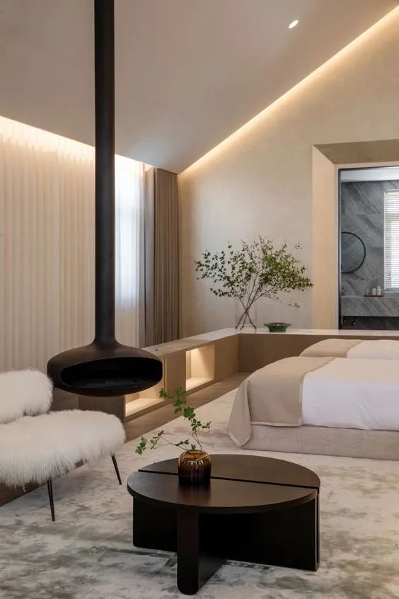 无主灯的设计弱化了“灯”在房间中的存在感,更平添了一抹温柔的气氛。让光源不仅仅是用来照明,更多的是温暖的氛围营造者。