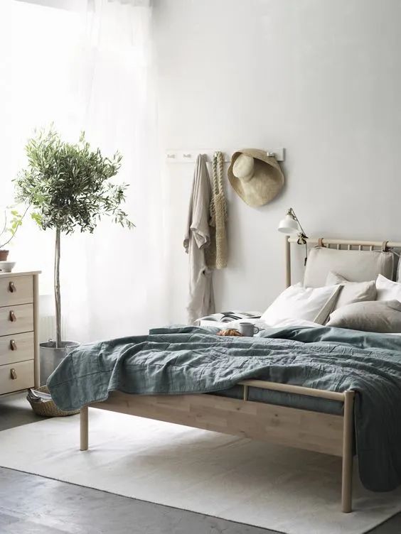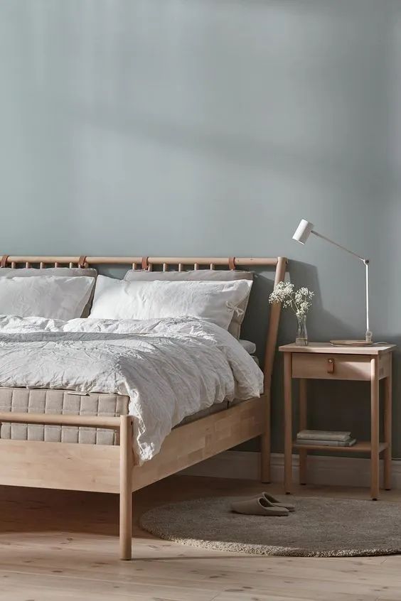 浅蓝+木色的搭配就是一个很好的选择,自然灵动中又夹杂着一次丝沉静的意味,清淡的颜色也不会制造压抑的氛围,让睡觉这件事从一开始就变得轻松起来。