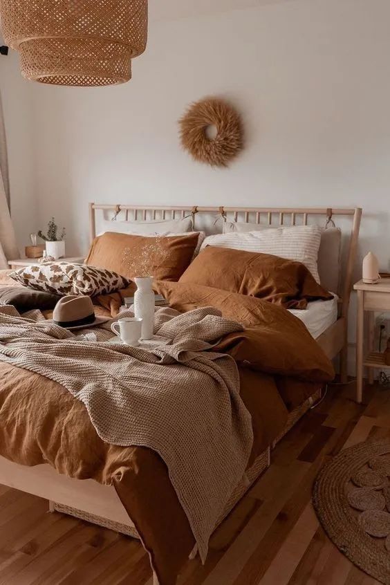要是不想让卧室变得过于冷静,那么橙色的使用会给整个空间带来温暖感,搭配上浅浅的灯光,整个人都会被温柔拥抱。剩下的就只是静心入眠啦。