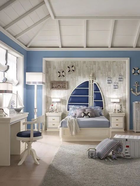 蓝白色调为主的男孩房,不正是未来“船长”的“乘风破浪”号吗?