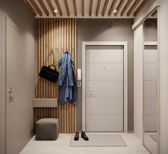 可以在门厅的位置,设计一个小小的衣帽区。这样在进门的时候,可以方便把外套,包包这些东西直接放置上去。这样在进出门的时候,就可以很方便的拿去包包或换衣服等。