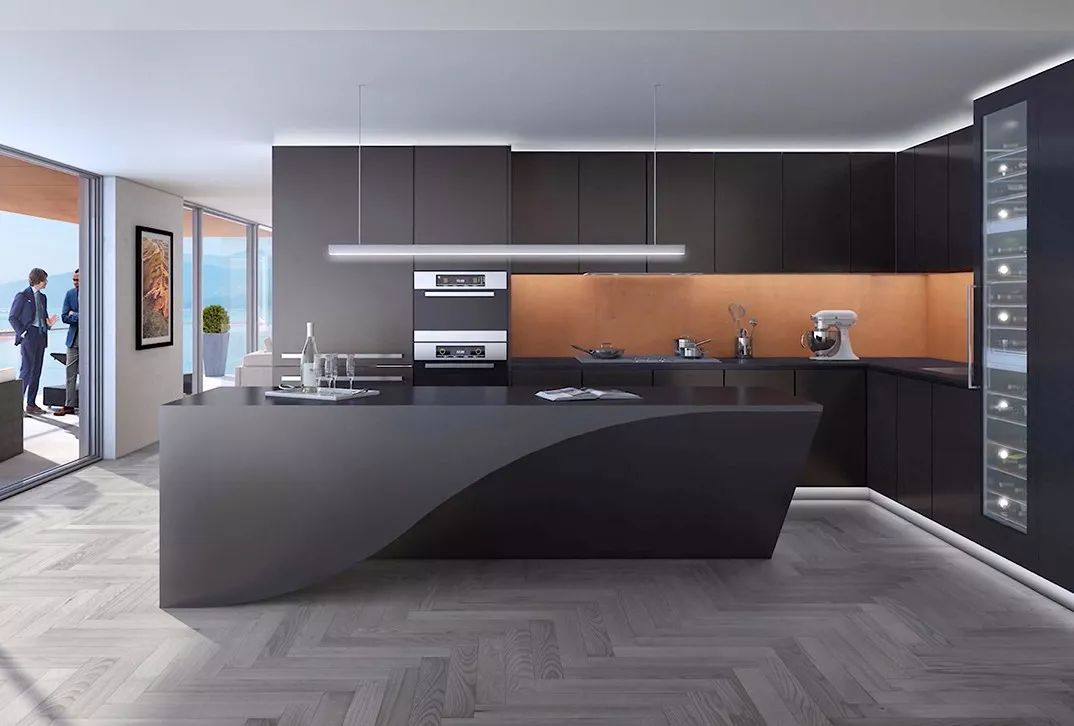 与其他色系相比,黑色系厨房显然更具视觉张力。它硬气十足,干净利落,无论是中规中矩的设计,还是在造型上别出心裁,都具有耐看又不失时尚的特点,给人带来非常惊艳的观感。