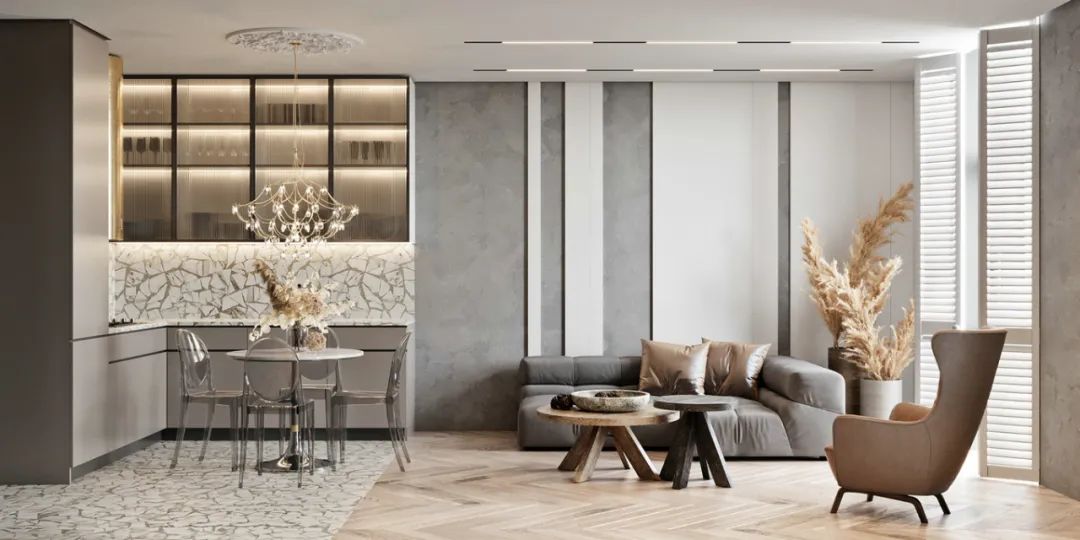 L是指客厅/起居室(Living Room)、D是指餐厅(Dining Room)、K则是指厨房(Kitchen),将这几大公共空间连在一起,空间利用率更高,制造出我家客厅“一眼望不到头”的假象。